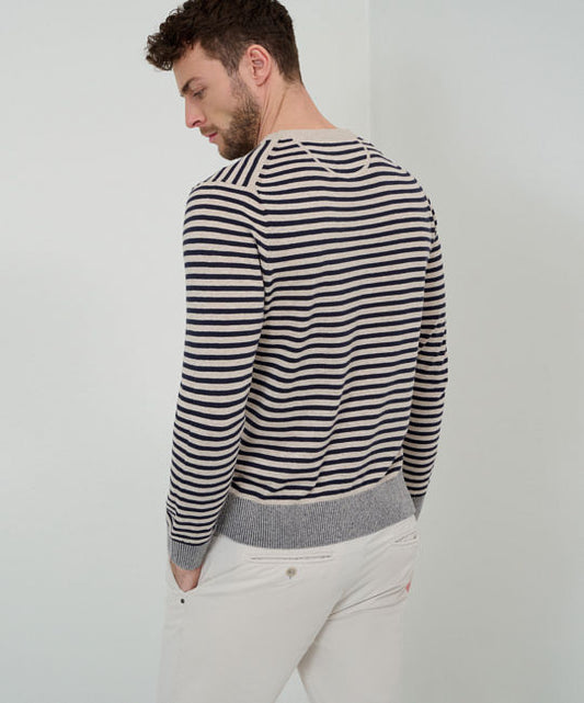 Round-Neck Pullover with Modern Striped Look