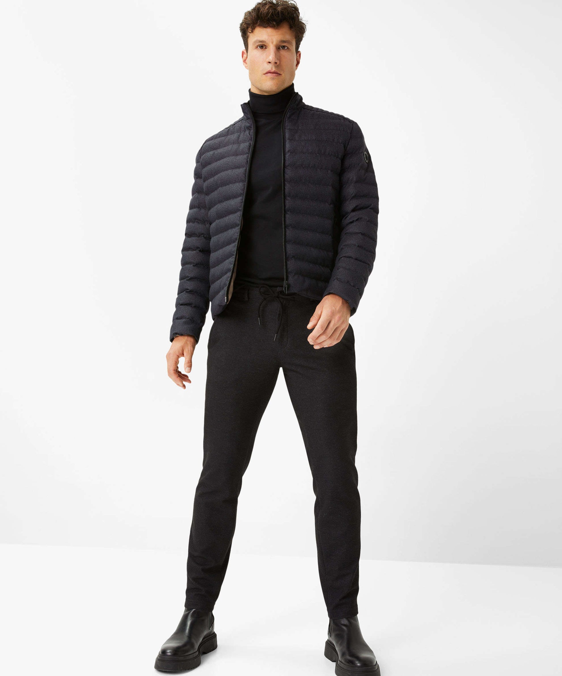 This jacket stands out with its high-closing collar and a straight silhouette, complemented by a sturdy zipper, side zip pockets, and practical inner pockets. The modern quilting and the noble wool look give it a smart character.