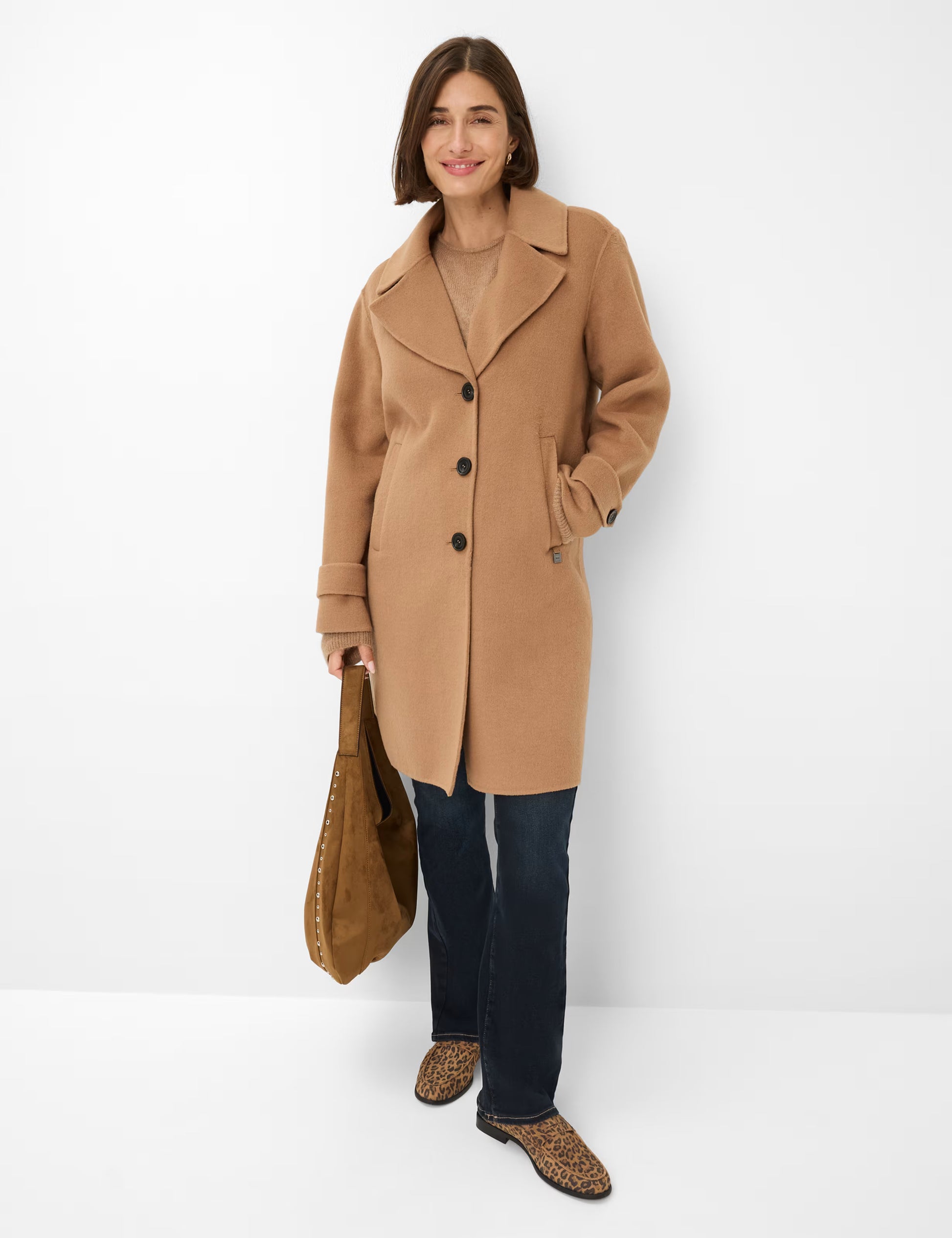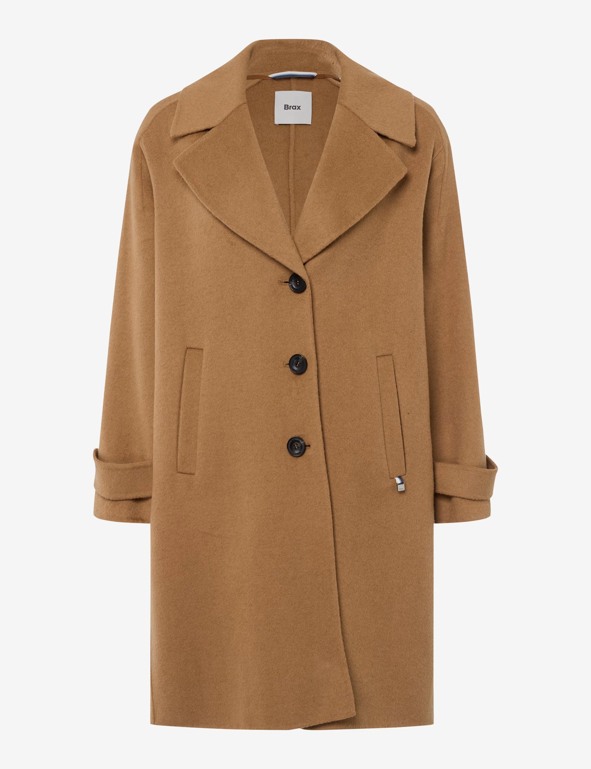 这款伦敦风格的大衣以其休闲挺括的廓形和都市优雅气质令人印象深刻。简洁的设计搭配醒目的翻领,赋予整体造型永恒的魅力,经典的3粒扣门襟则确保了挺括的线条。袖口处巧妙地设计了卷边袢,既展现了个性,又兼具实用性。正面两侧的贴边口袋完善了整体造型,并可存放一些小物件。