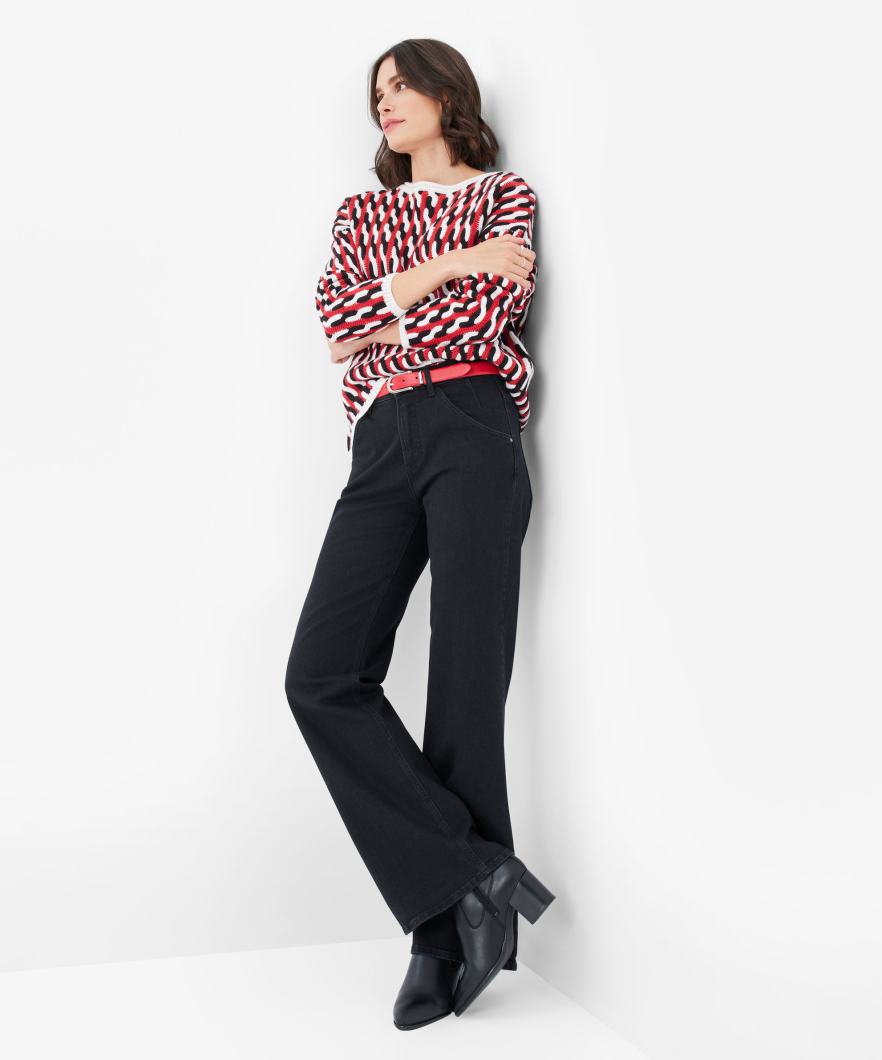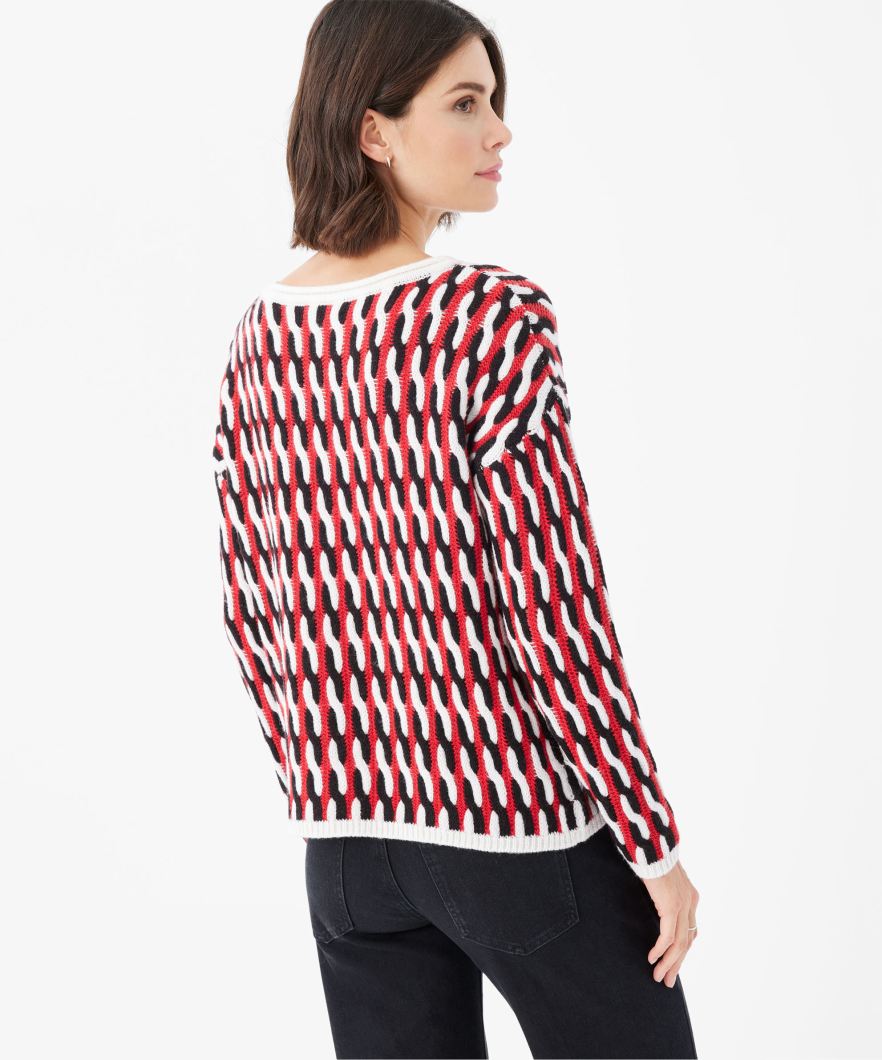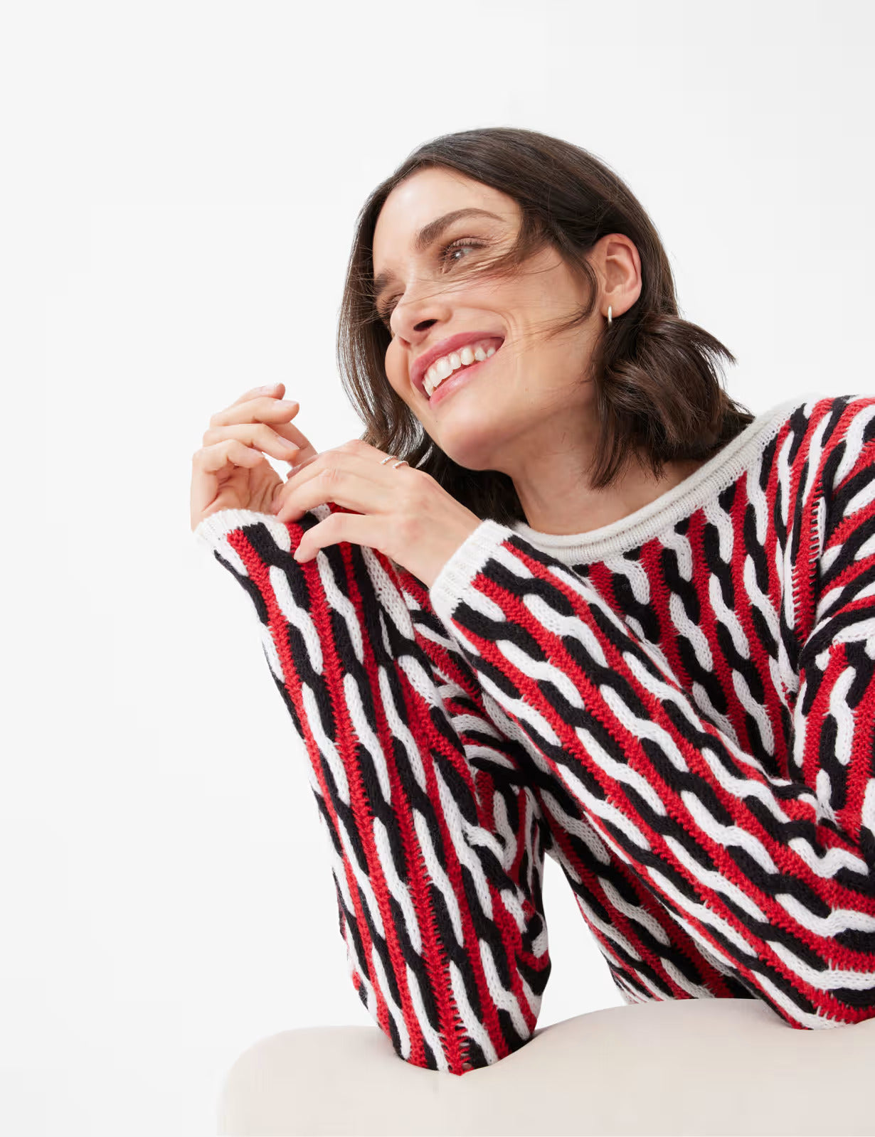 LIZ 風格女用針織毛衣為您的冬季造型增添色彩和舒適感。它散發著休閒優雅的氣息,與落肩完美搭配。亮點:複雜的電纜圖案採用充滿活力的多色設計,與黑色或奶油色完美搭配。