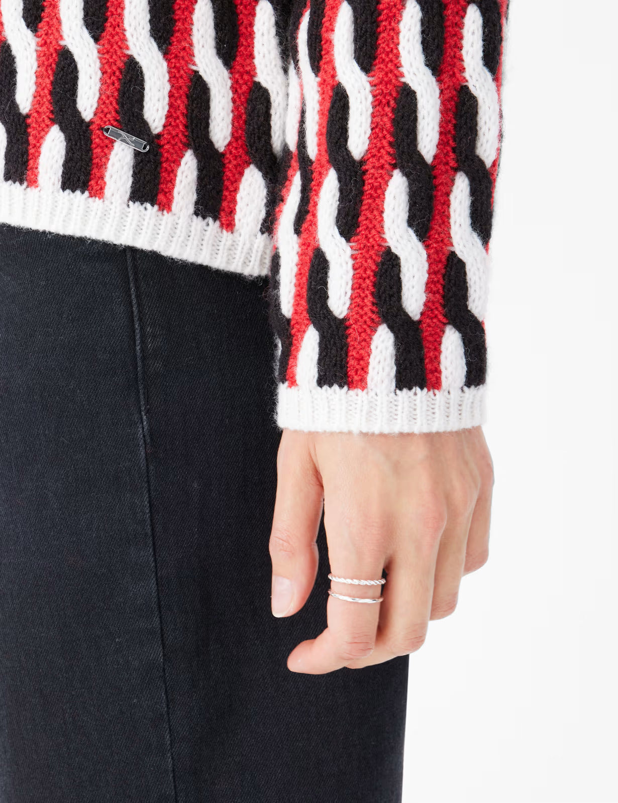 這款毛衣採用精心平衡的羊毛和聚丙烯酸混紡面料製成,提供舒適的溫暖和柔軟的觸感。非常適合時尚的冬季服裝。