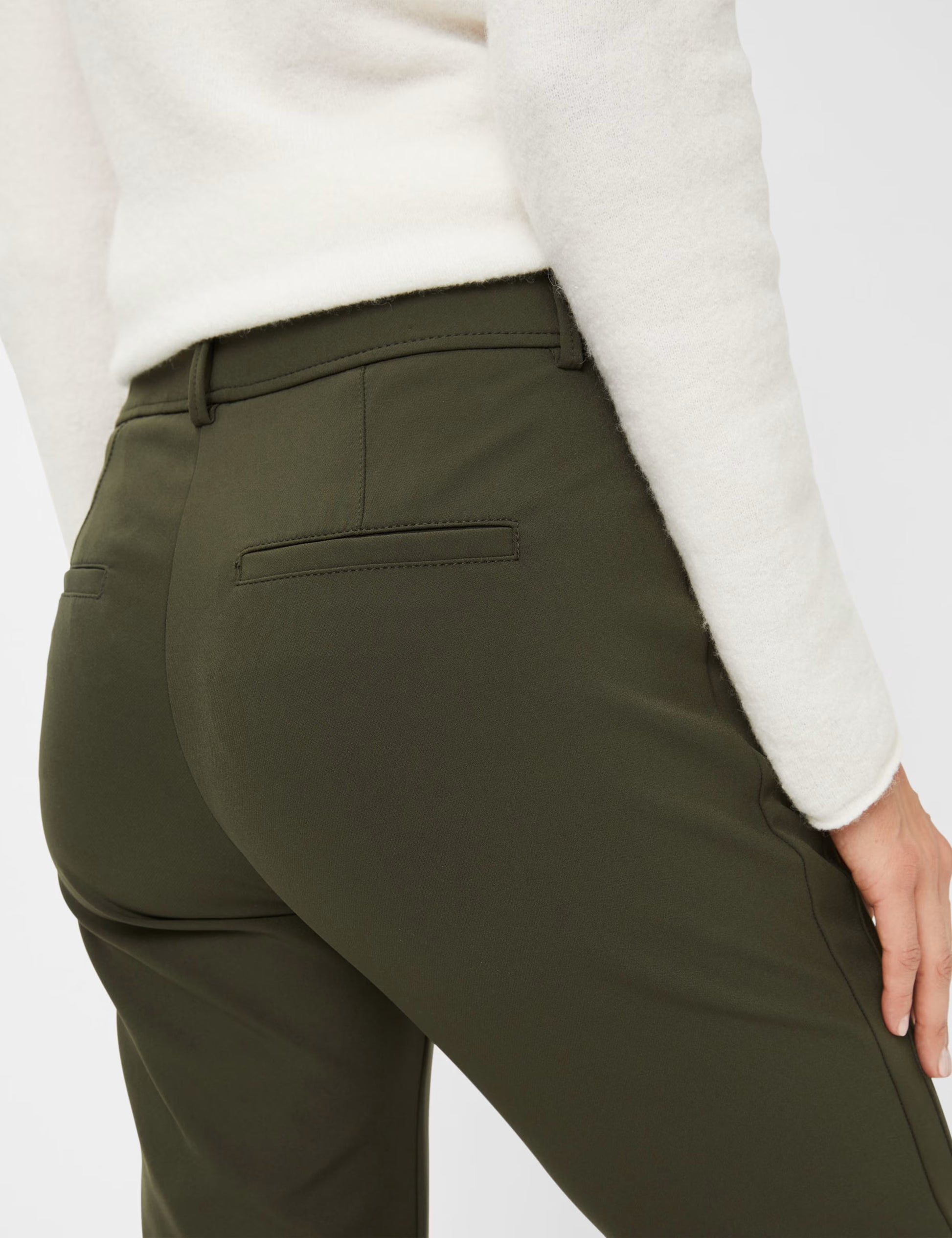 當與毛衣和平底鞋搭配時,永恆的 7/8 斜紋棉布褲完美搭配休閒裝。 精緻的口袋設計賦予褲子典型的觸感。此外,它們還採用明線和滾邊設計。