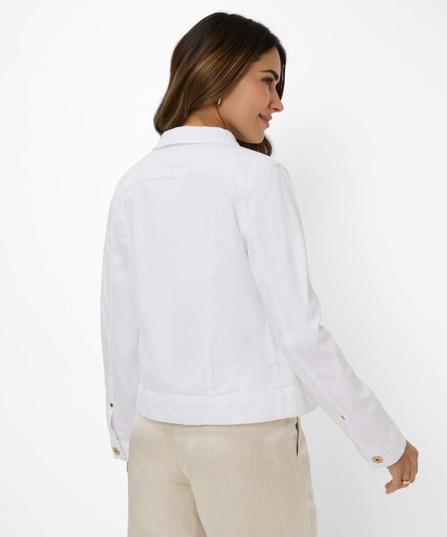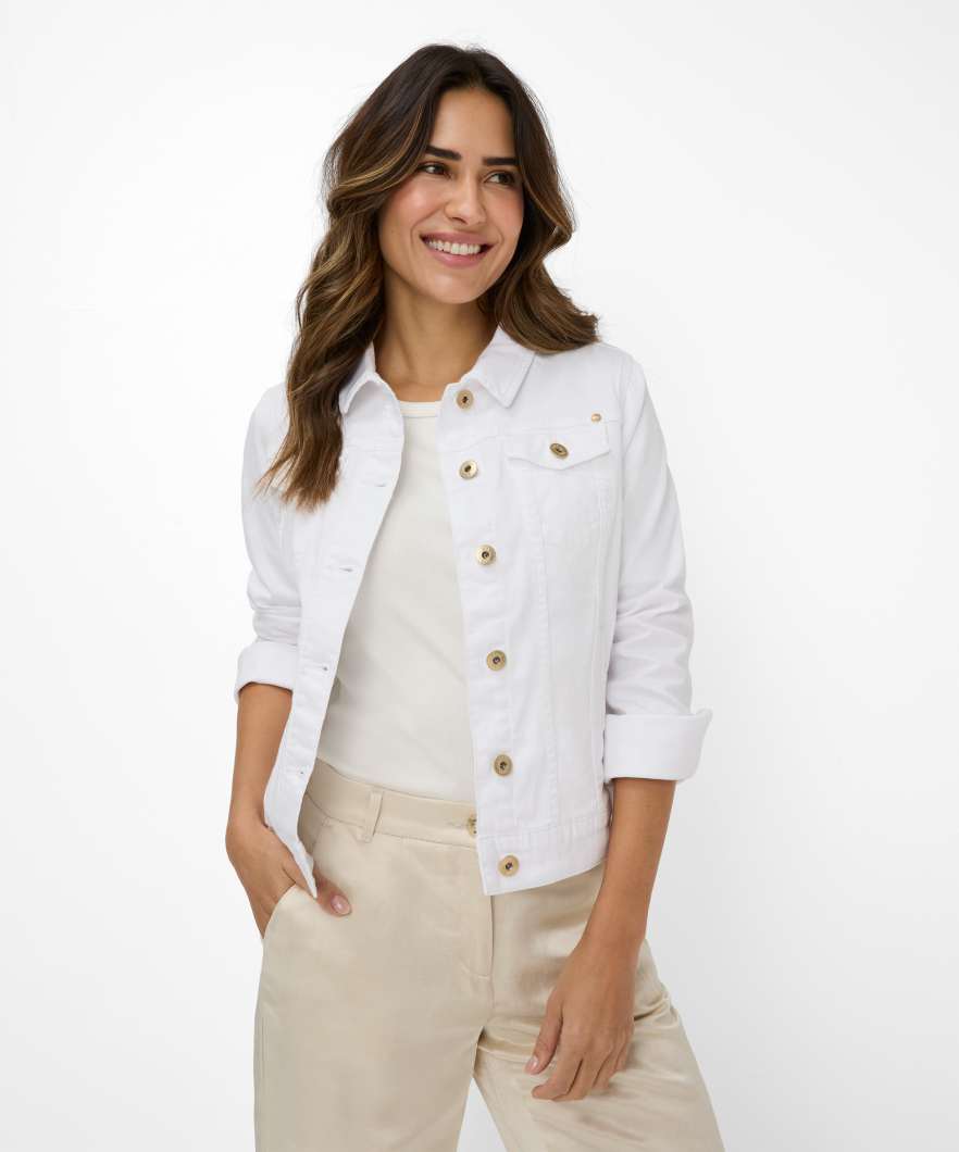 這款女用牛仔夾克採用略微剪裁的款式,配有經典的扣環門襟和貼胸袋,為設計增添了真實的質感。