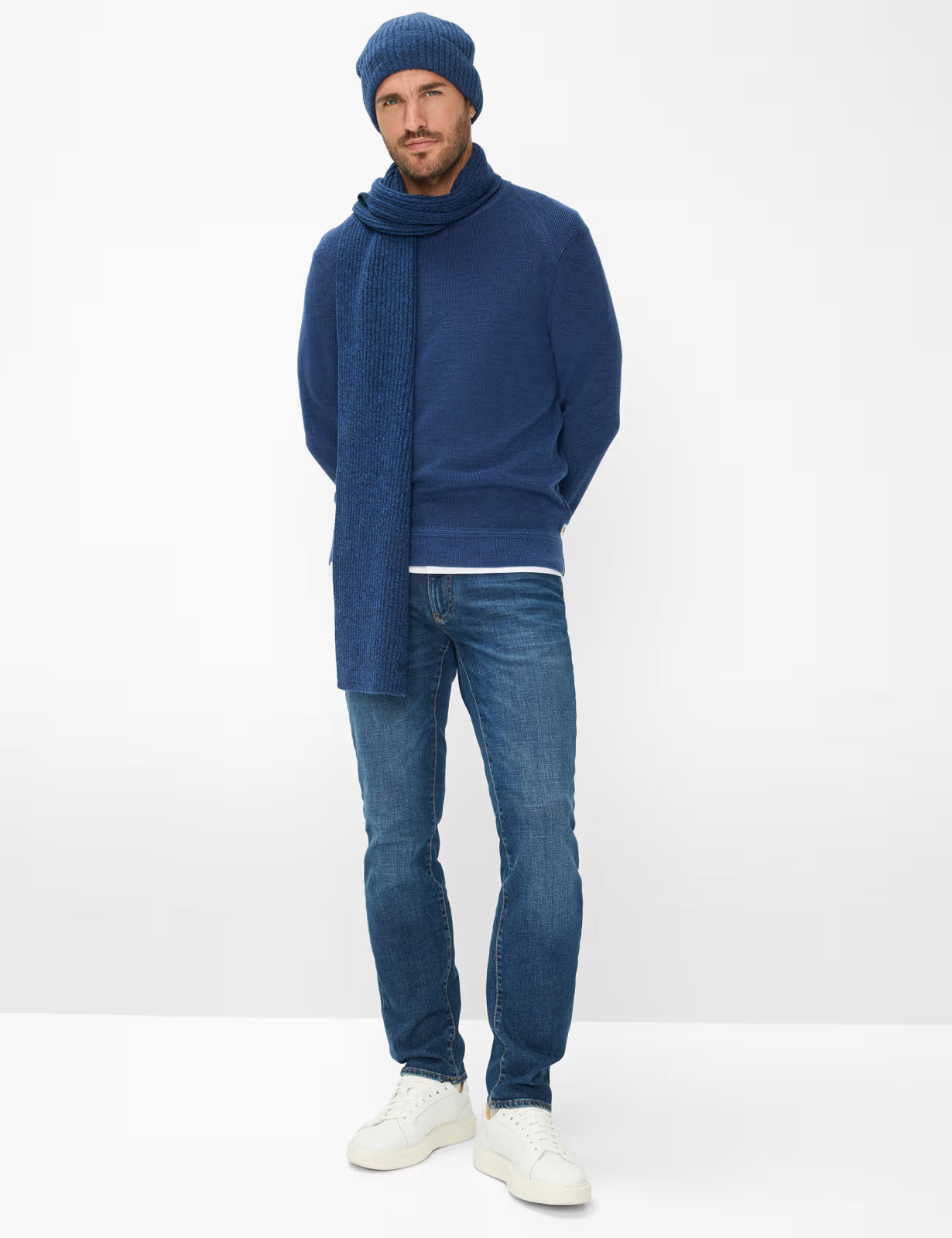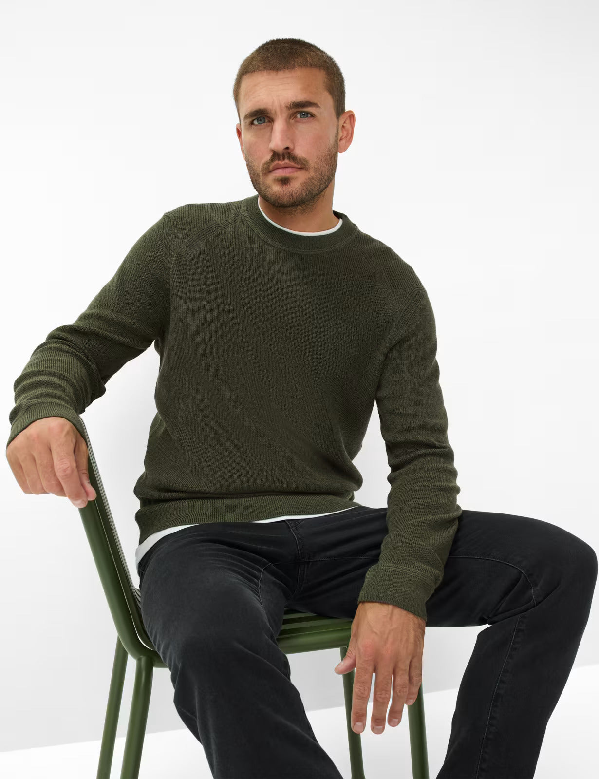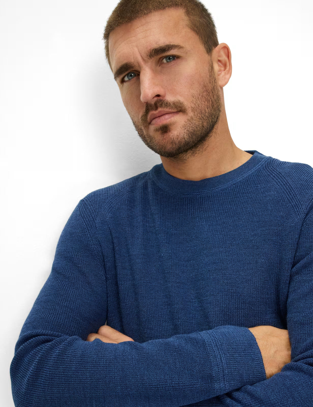 這款毛衣的布料巧妙地融合了44%的棉、29%的腈綸和27%的羊毛,並採用創新的「Feel Good Sportive」工藝:內裡柔軟的棉質面料輕柔貼合肌膚,帶來一流的穿著舒適度;外層細膩的羊毛面料則賦予其精緻的高品質外觀和輕盈的保暖性。這使得這款毛衣成為日常生活中輕鬆休閒裝扮或時尚疊穿的完美伴侶。