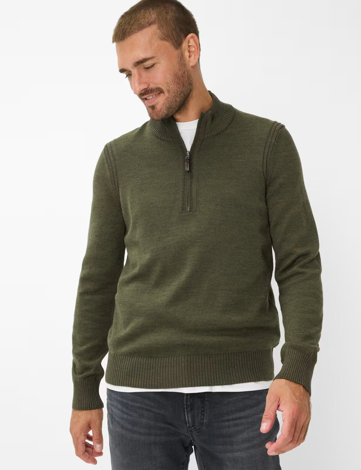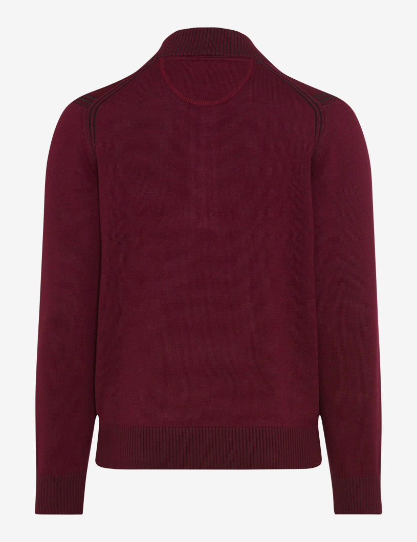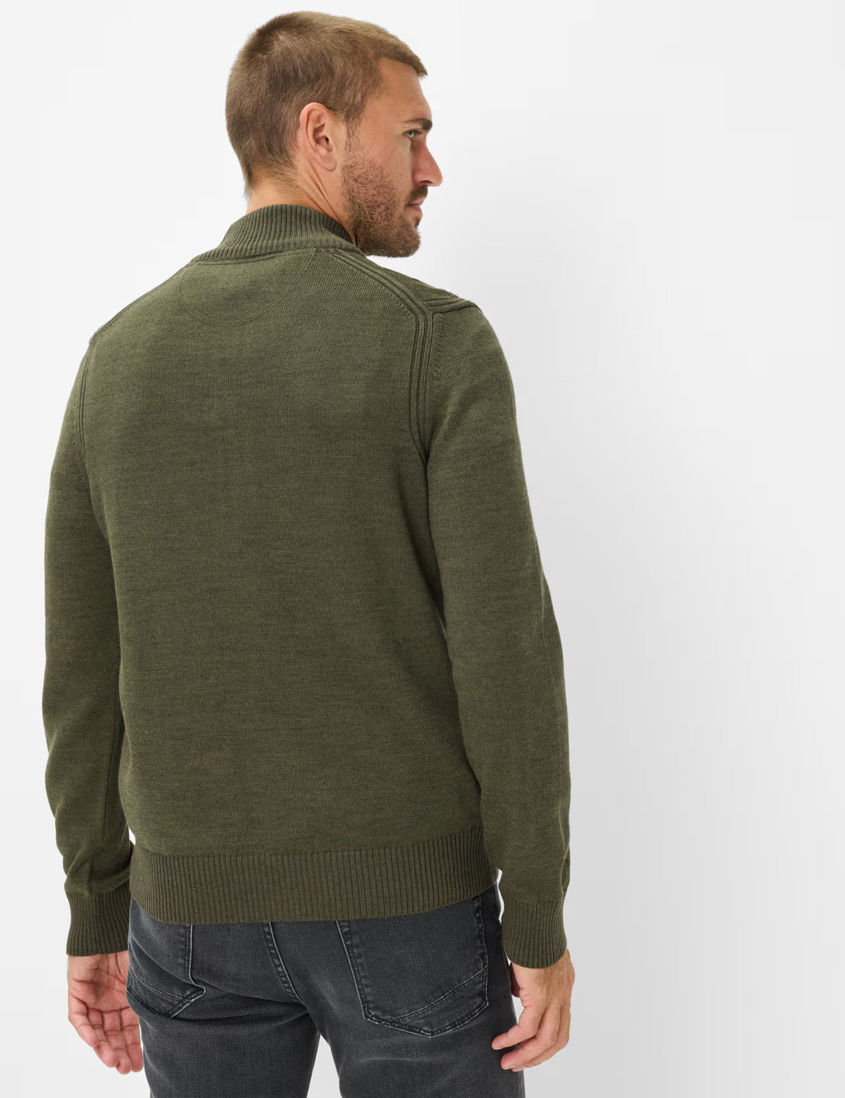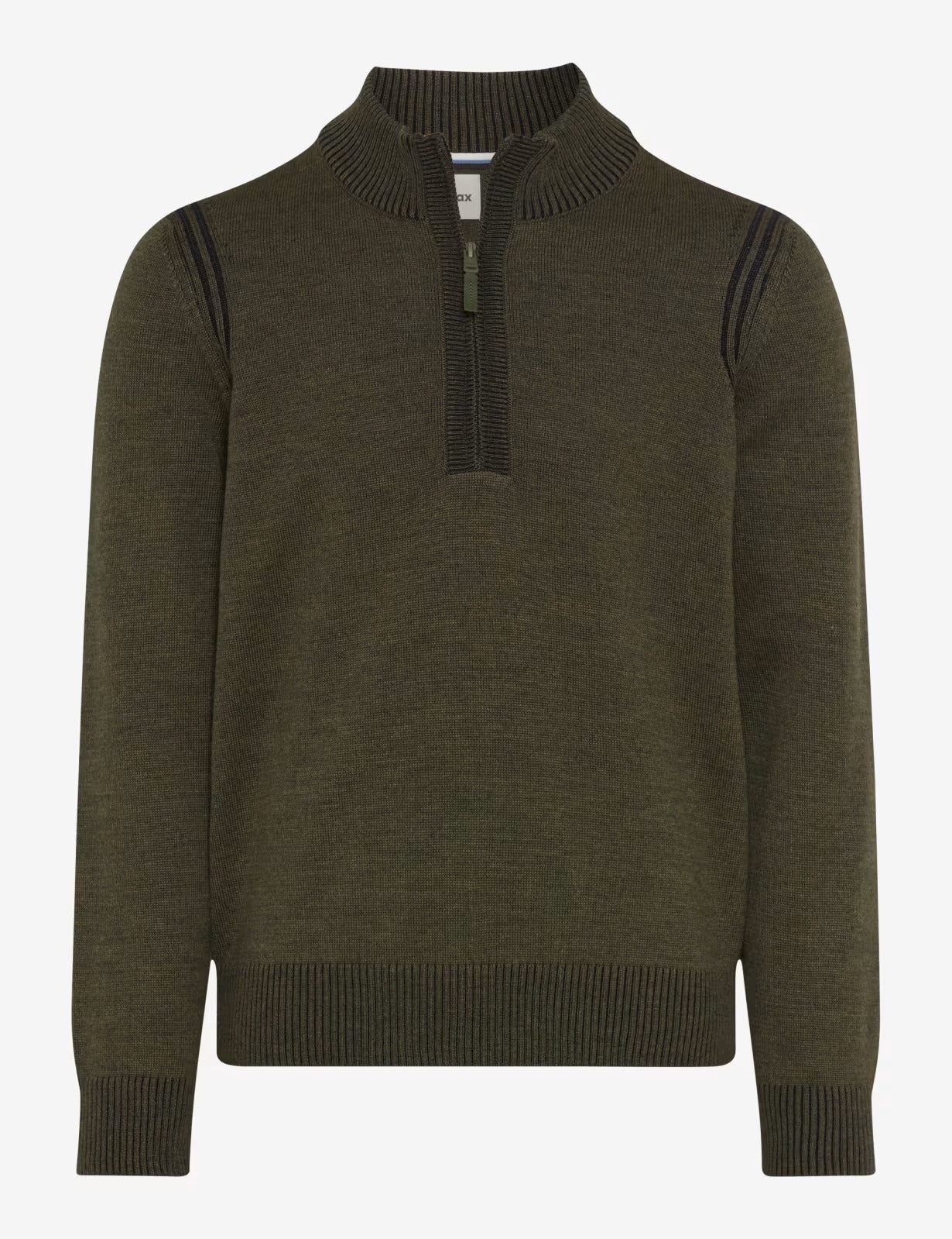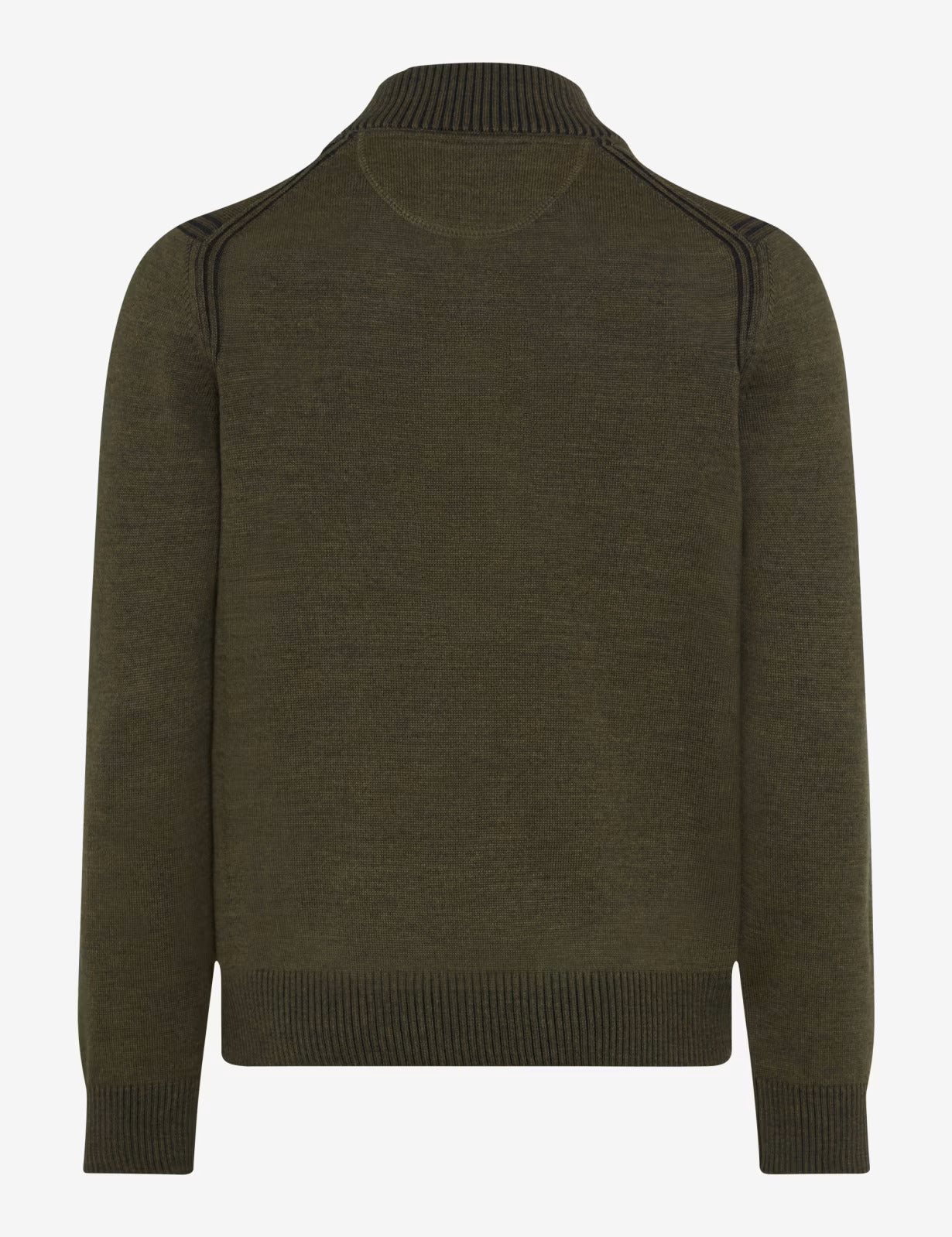經典的Troyer領搭配短拉鍊,不僅實用,更增添了醒目的點綴。精緻的撞色針織細節特別引人注目。這些雙色羅紋針織元素賦予毛衣動感十足的現代感。針織圖案整體呈現細膩的斑駁紋理,賦予毛衣豐富的層次感和獨特的個性。