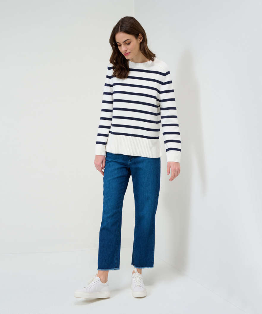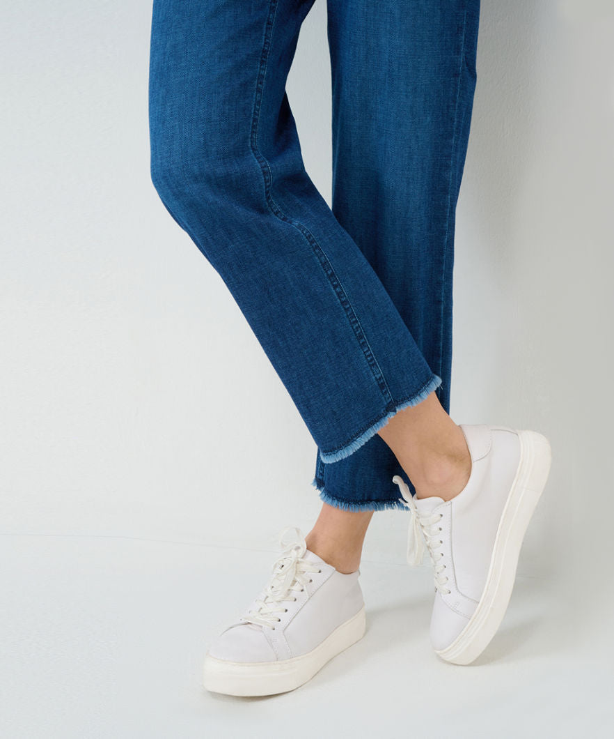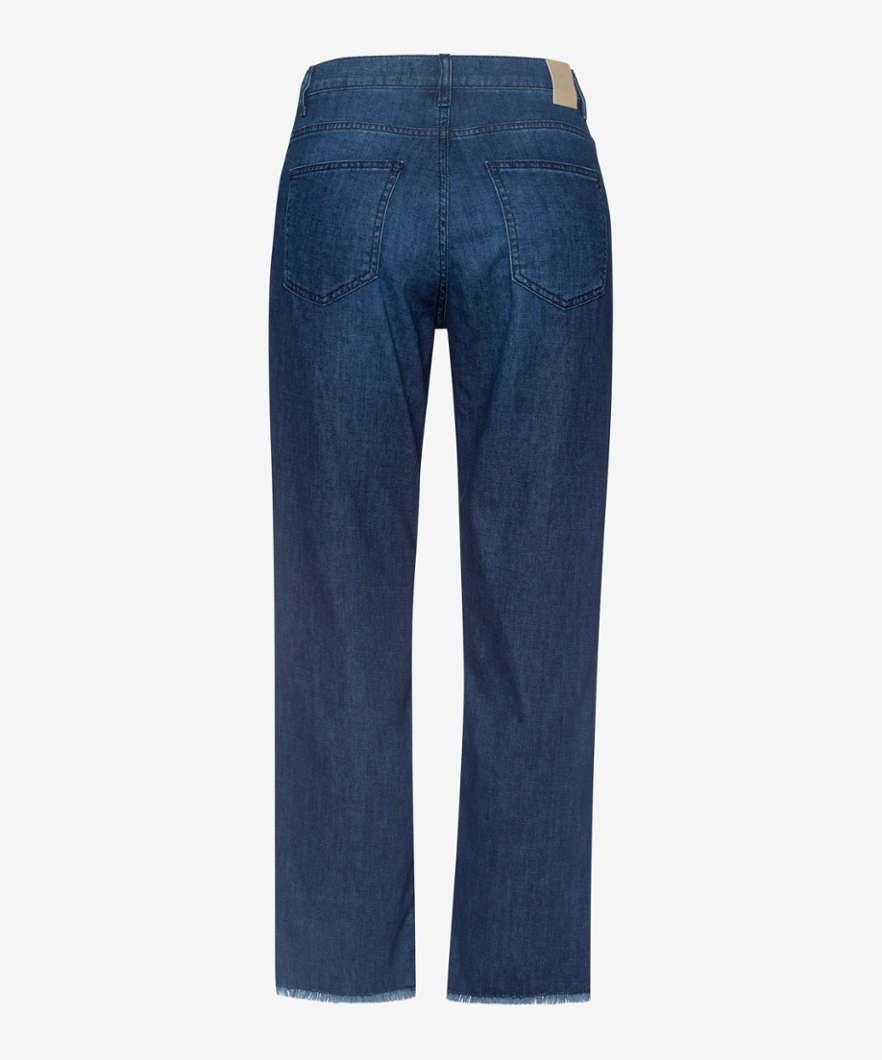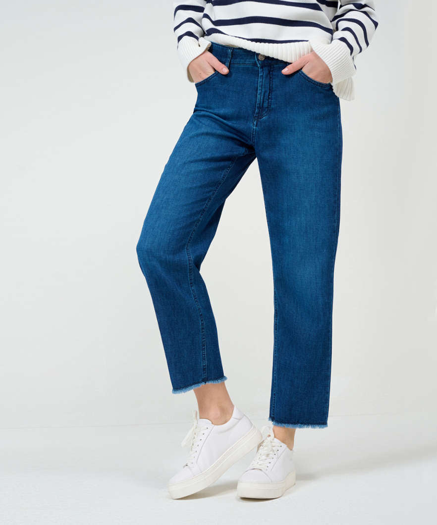 這款五口袋牛仔褲採用可持續、易於護理且親膚的棉混紡面料,手感極佳。