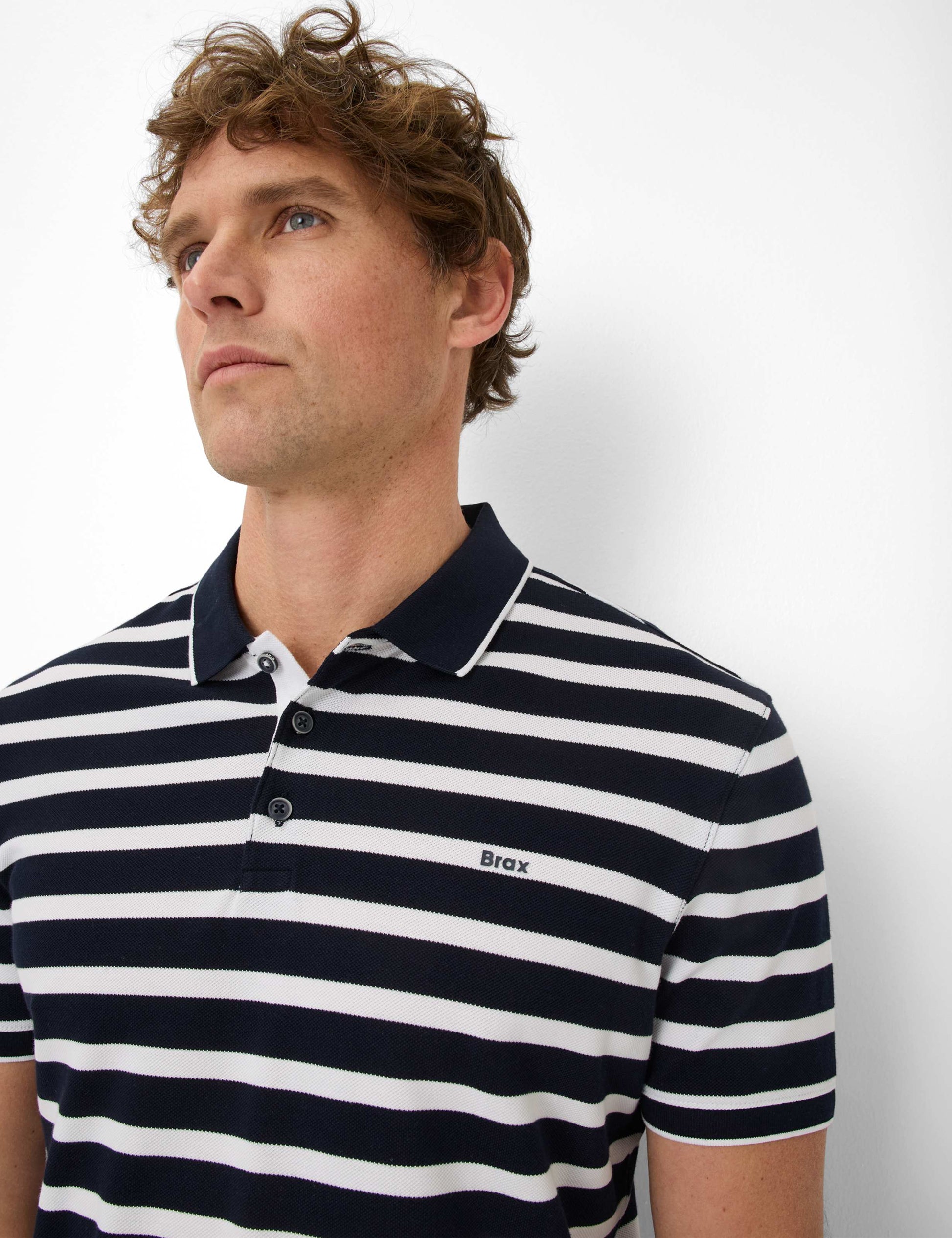 這款 Polo 衫採用直筒造型,經典的紐帶開襟和 Polo 領,時尚的橫條紋,給人留下了深刻的印象,具有永恆的外觀。