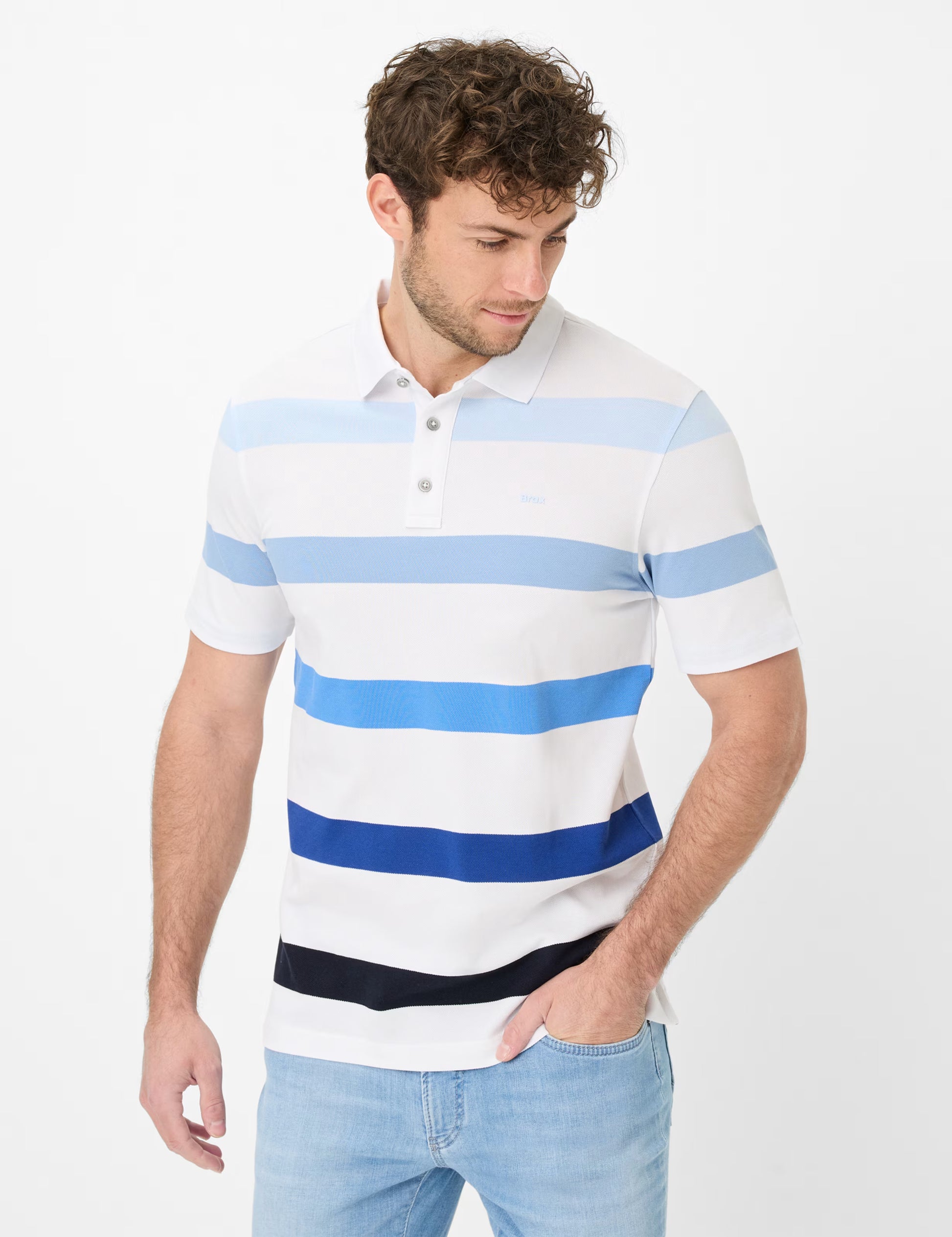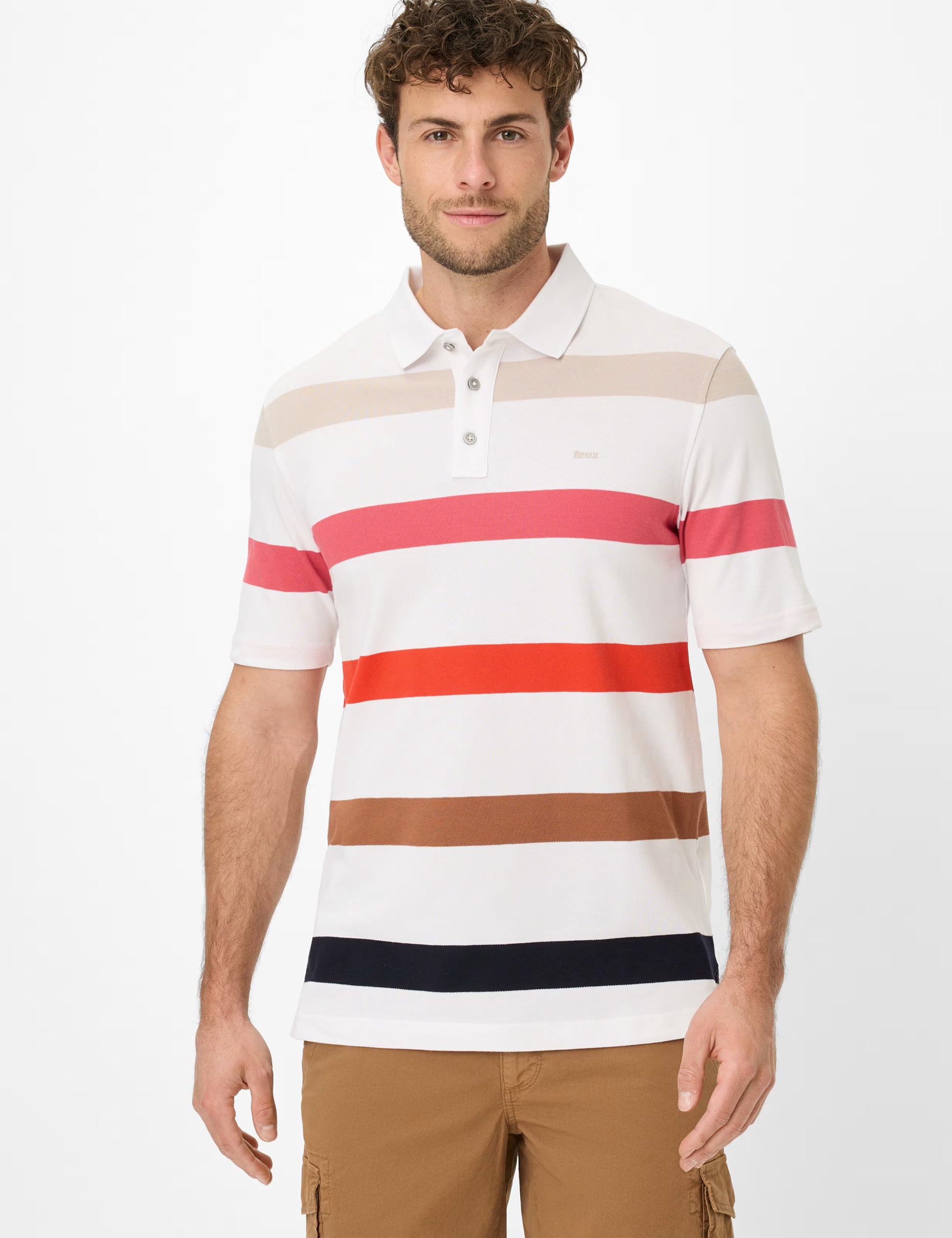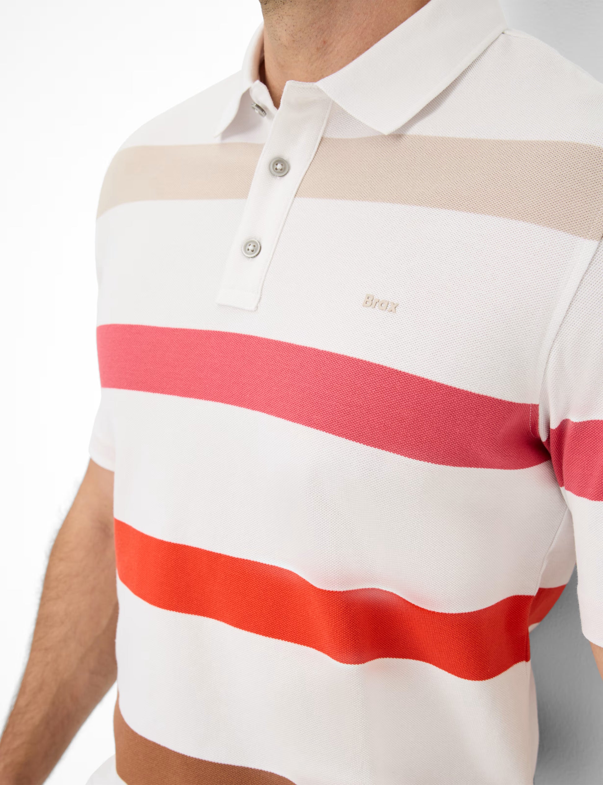 經典直筒版型、經典扣環開襟和短袖設計,使其成為夏季必備單品。尤其是鮮豔色彩的橫向條紋,更顯運動魅力。