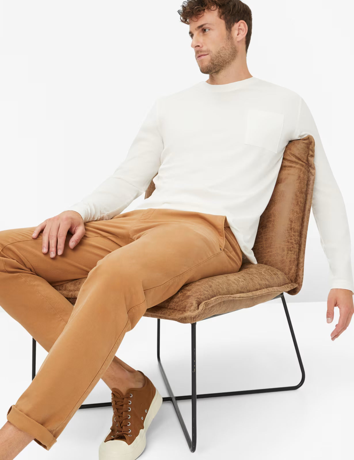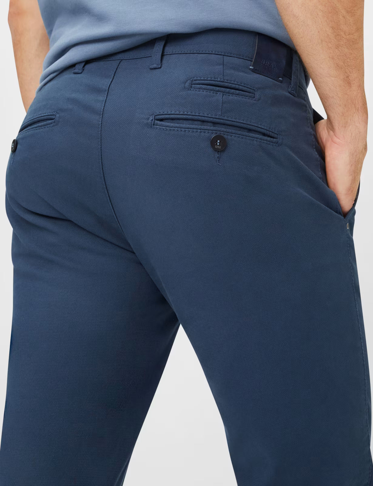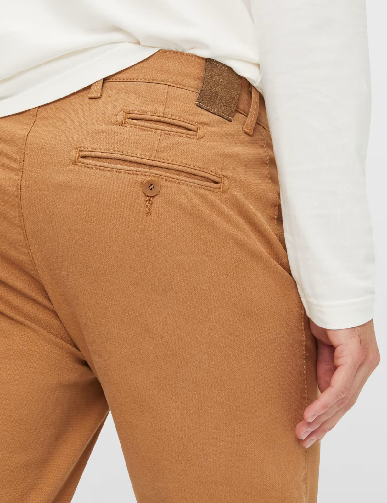 運動無限制:極具彈性的 Hi-Flex 纖維由於高彈性(BRAX 獨有)保證了無限的運動自由度。其質感以其引人注目的外觀賦予面料活力,同時也充滿自信和令人興奮。這款平前褲採用可持續、易於護理且親膚的棉質混紡面料,帶來完美的感覺。