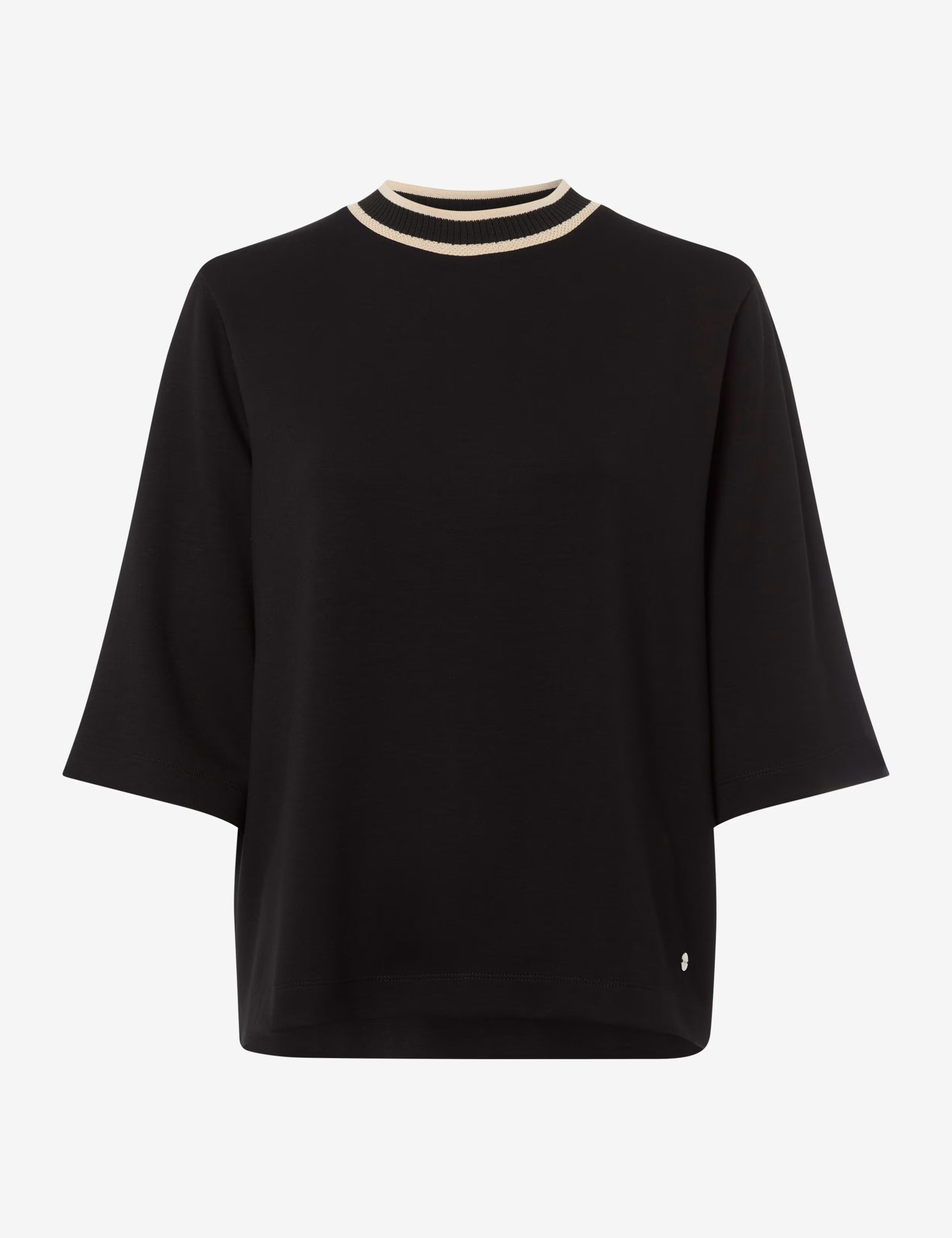 這款運動衫以精緻的立領和現代輪廓驚艷亮相。寬鬆的肩部設計、柔和的腰線和寬袖剪裁,營造出和諧的視覺效果。衣領上精緻的裝飾帶增添了優雅的點綴,並凸顯了其高品質的設計。