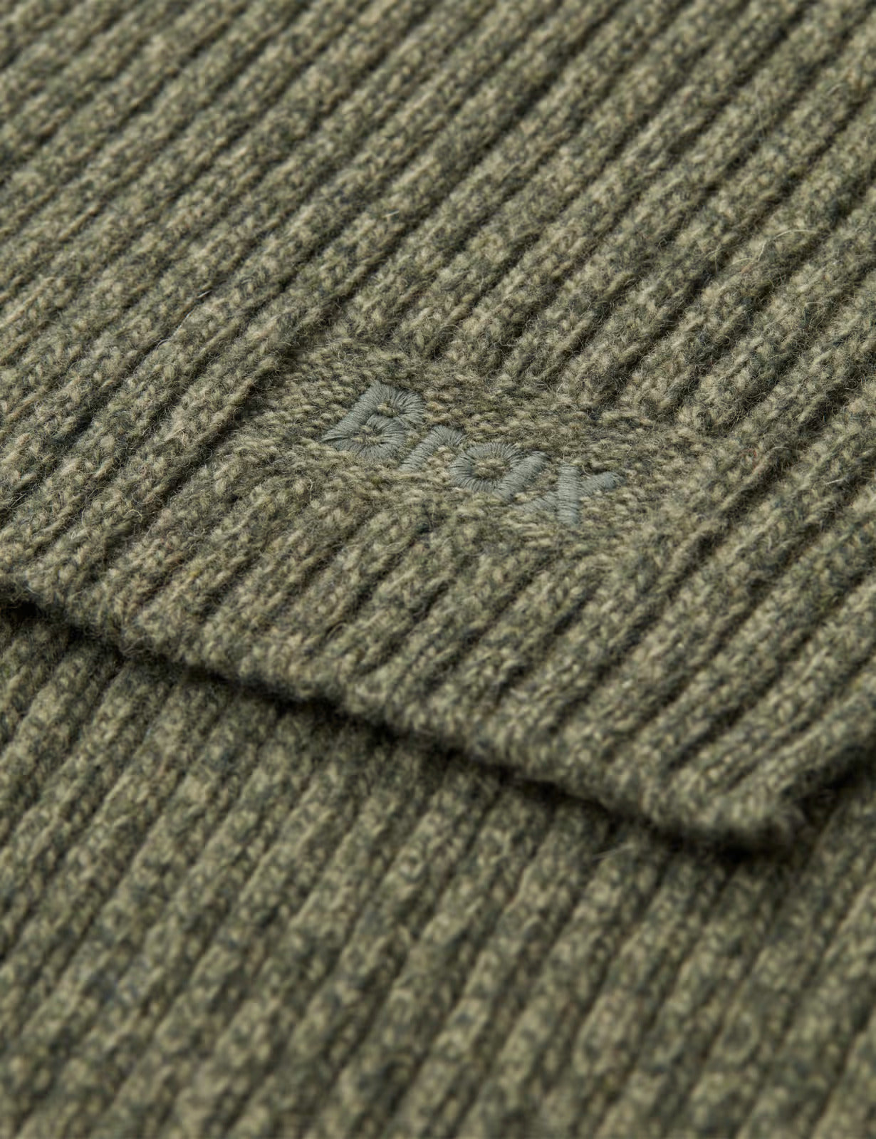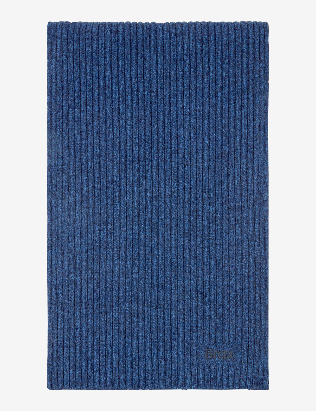 這款圍巾採用醒目的 2/2 羅紋結構,展現出經典的男性化網狀視覺效果,既經典又現代。