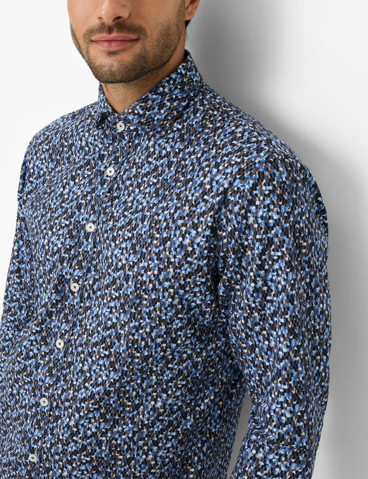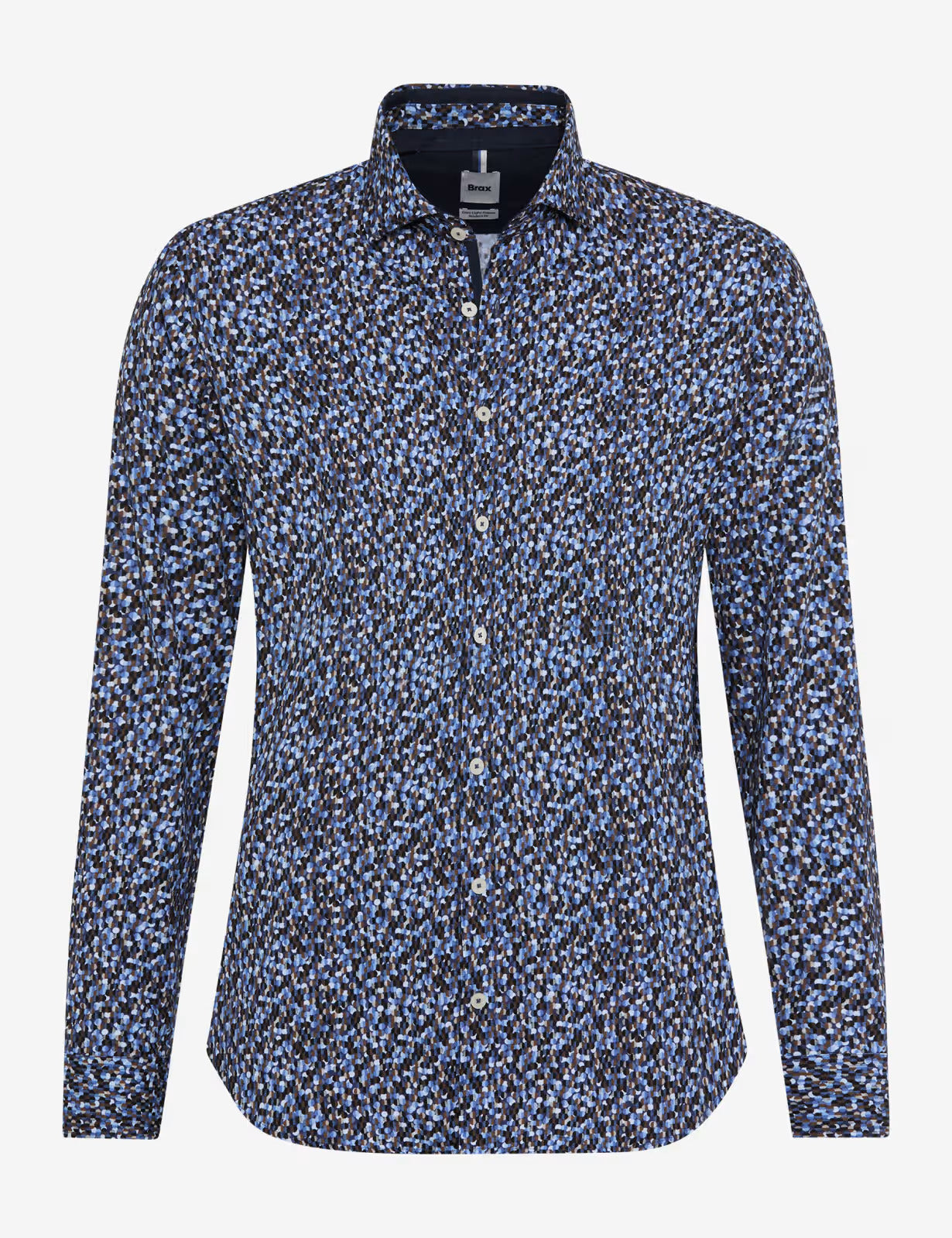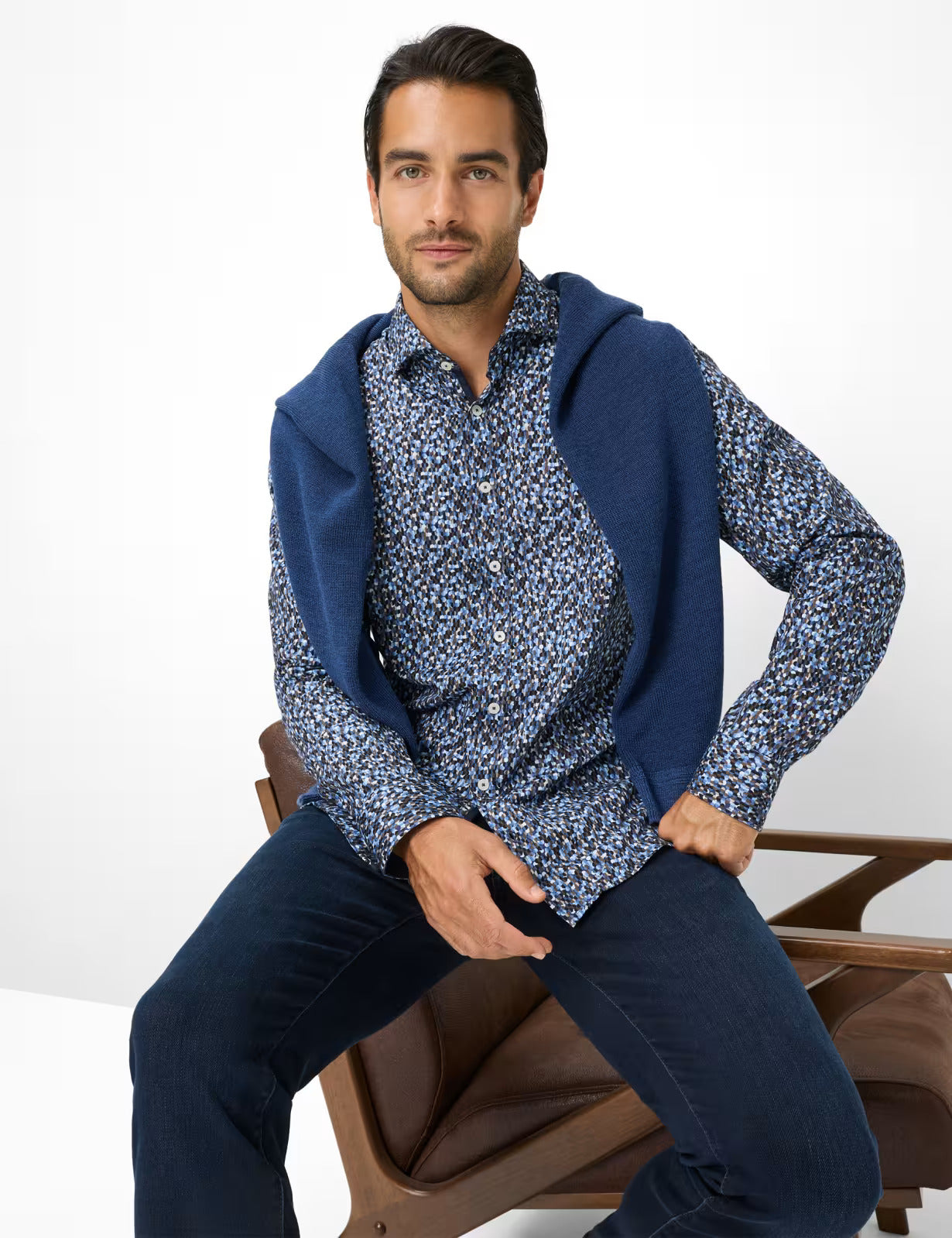 略帶陽剛氣息的剪裁廓形,搭配優雅的鯊魚領,既舒適又時尚,兼具現代感。幾何印花賦予襯衫豐富的表現力,並可進行多種搭配。
