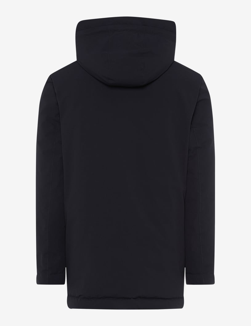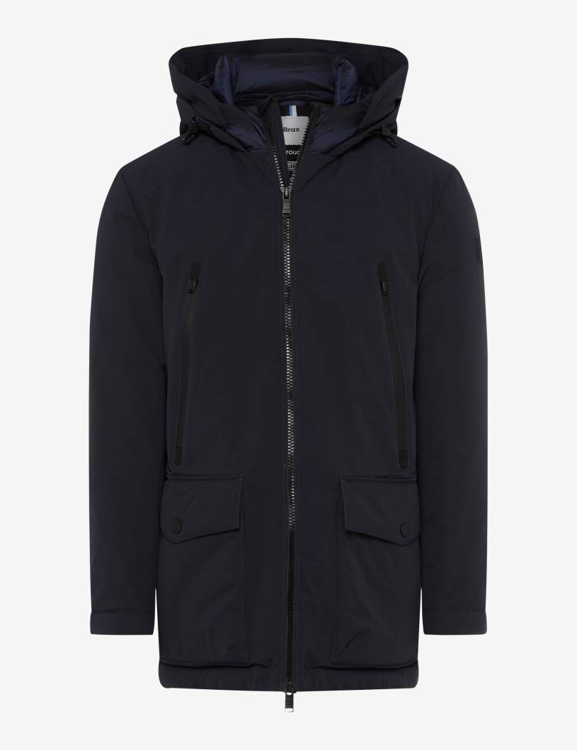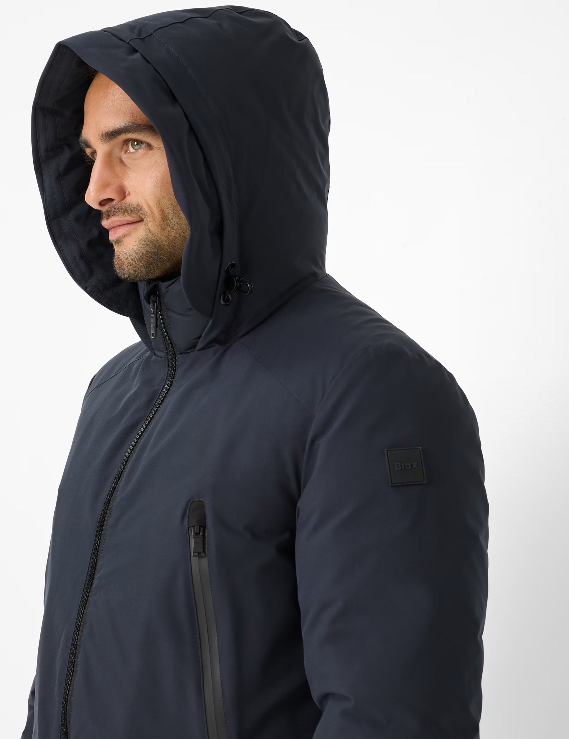 直筒略帶休閒感的廓形,搭配帶兜帽的高立領和醒目的雙向拉鍊設計,更顯時尚氣息。撞色邊緣的側邊拉鍊口袋增添了運動氣息,寬敞的腰部口袋配有按鈕鎖,既實用又實用:可從上方和側面取放物品。實用的內袋可安全存放您的貴重物品。