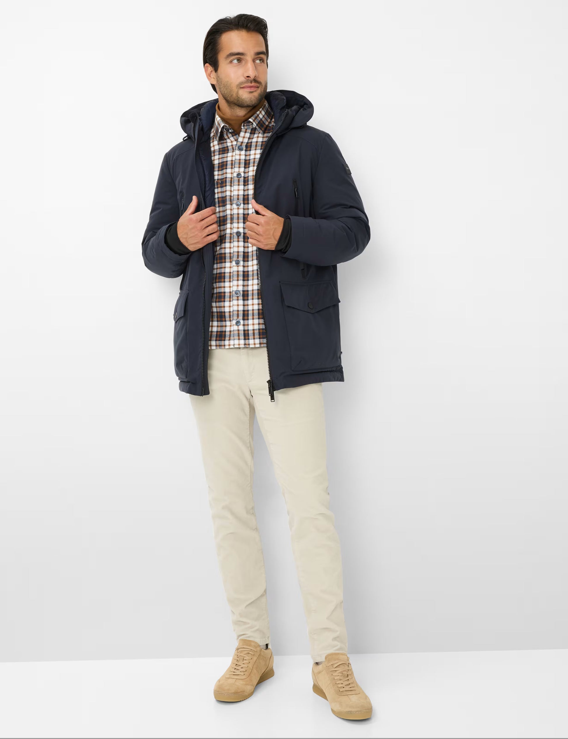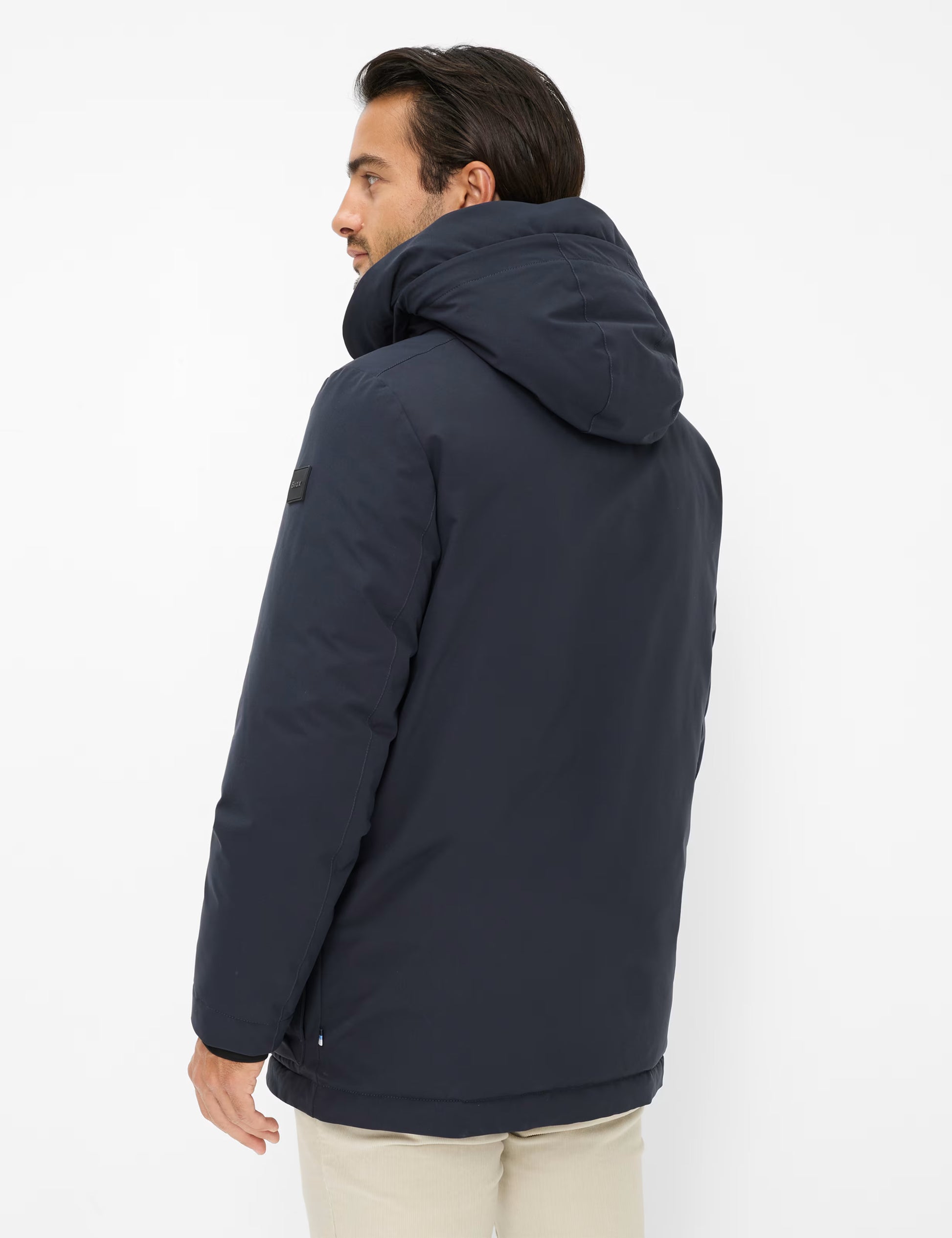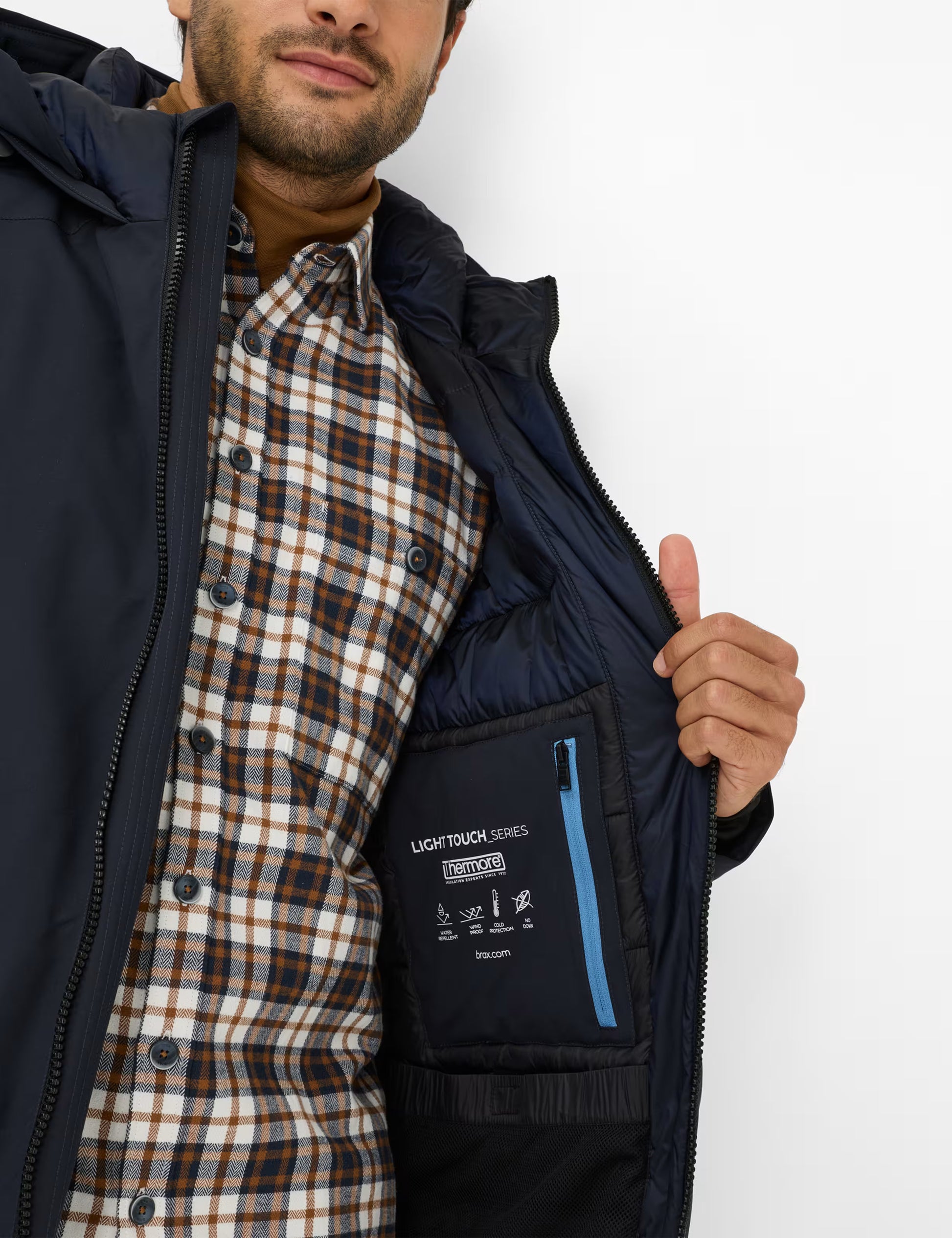 直筒略帶休閒感的廓形,搭配帶兜帽的高立領和醒目的雙向拉鍊設計,更顯時尚氣息。撞色邊緣的側邊拉鍊口袋增添了運動氣息,寬敞的腰部口袋配有按鈕鎖,既實用又實用:可從上方和側面取放物品。實用的內袋可安全存放您的貴重物品。
