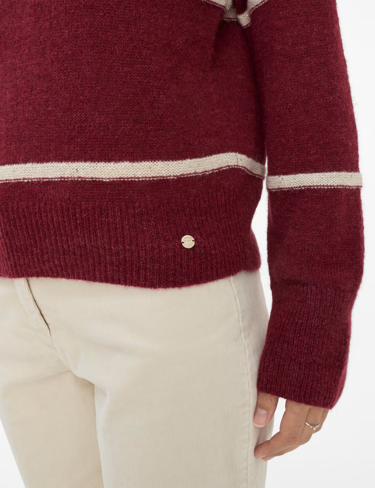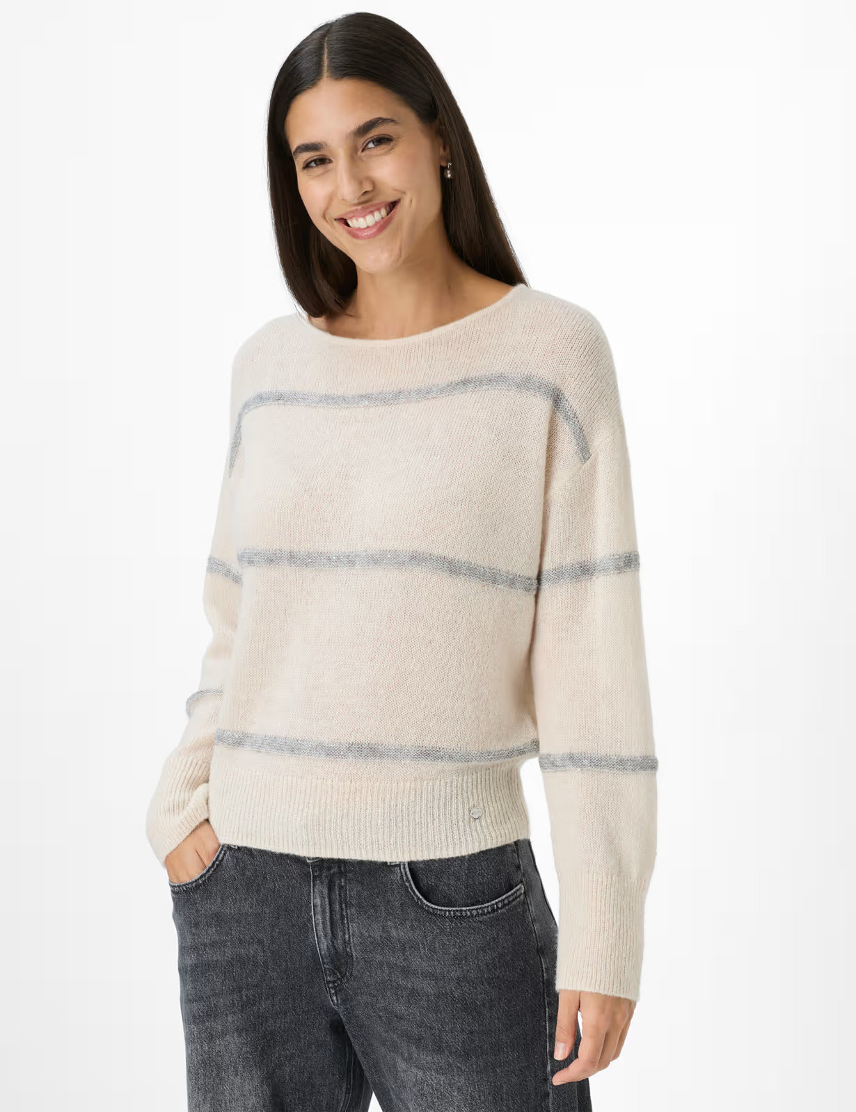 這款毛衣採用高貴的材質製成,不僅在視覺上令人賞心悅目,而且手感也十分舒適:由聚醯胺、羊毛、羊駝毛和少量聚酯製成的柔軟針織物帶來輕盈和柔軟蓬鬆的感覺。