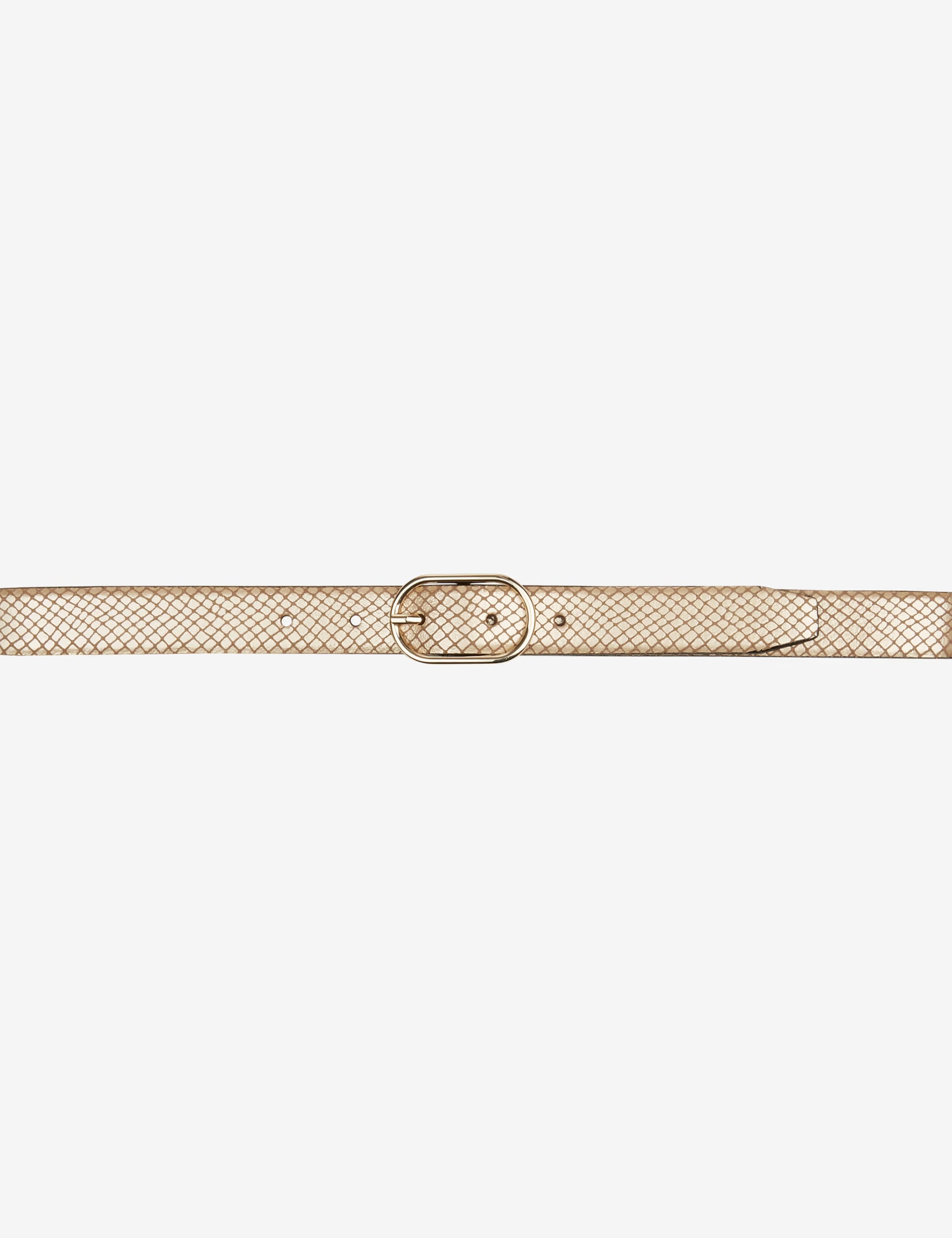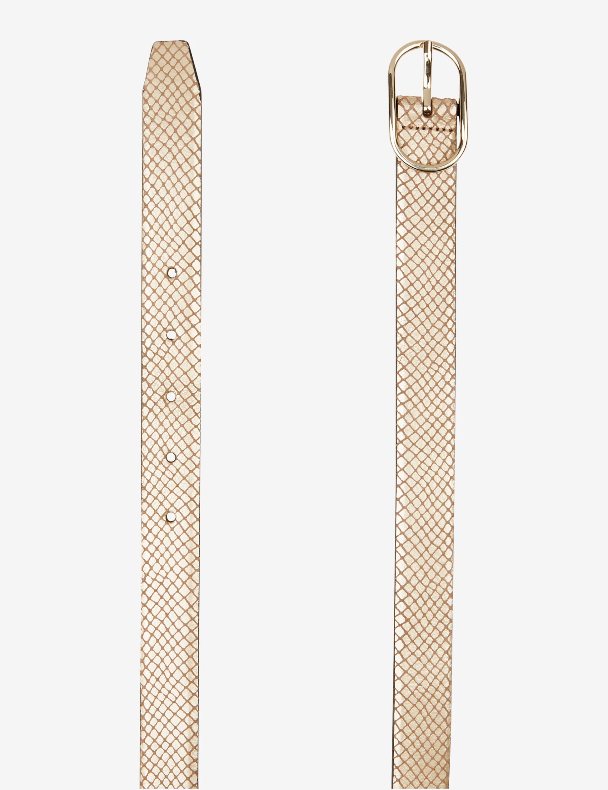 醒目的金屬外觀與精緻的蛇紋壓紋相得益彰,賦予這款腰帶獨特的韻味,而時尚的焦糖色則散發著現代優雅的氣息。金屬扣環與整體設計和諧融合,更顯尊貴氣質。
