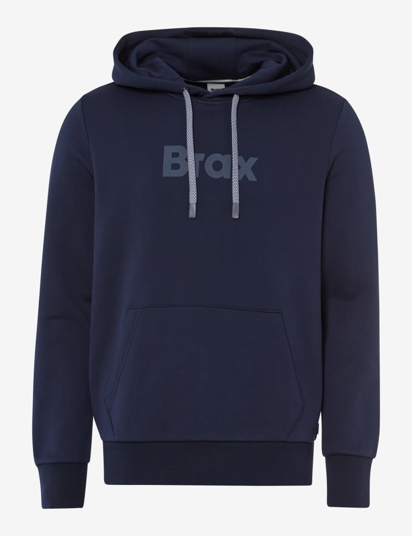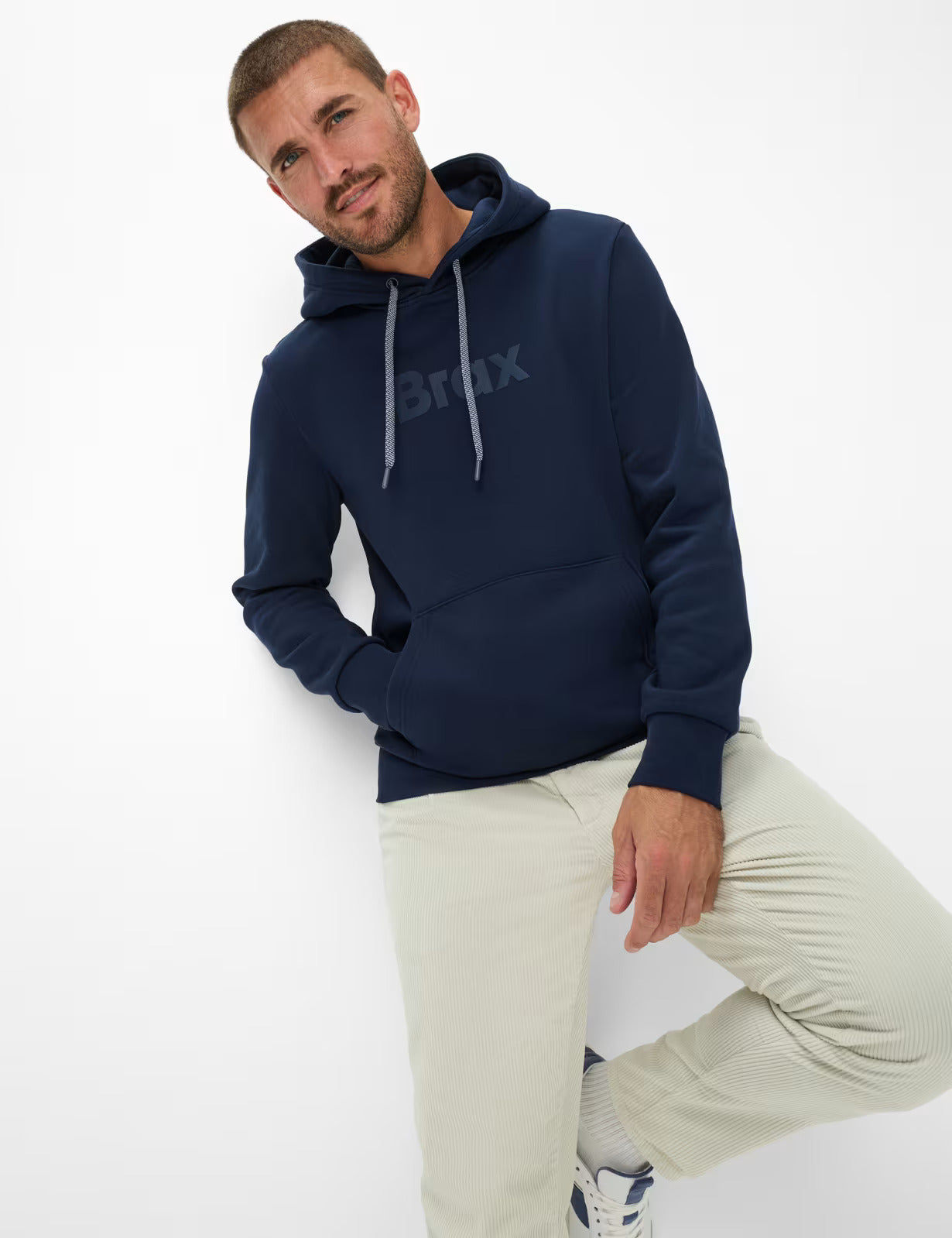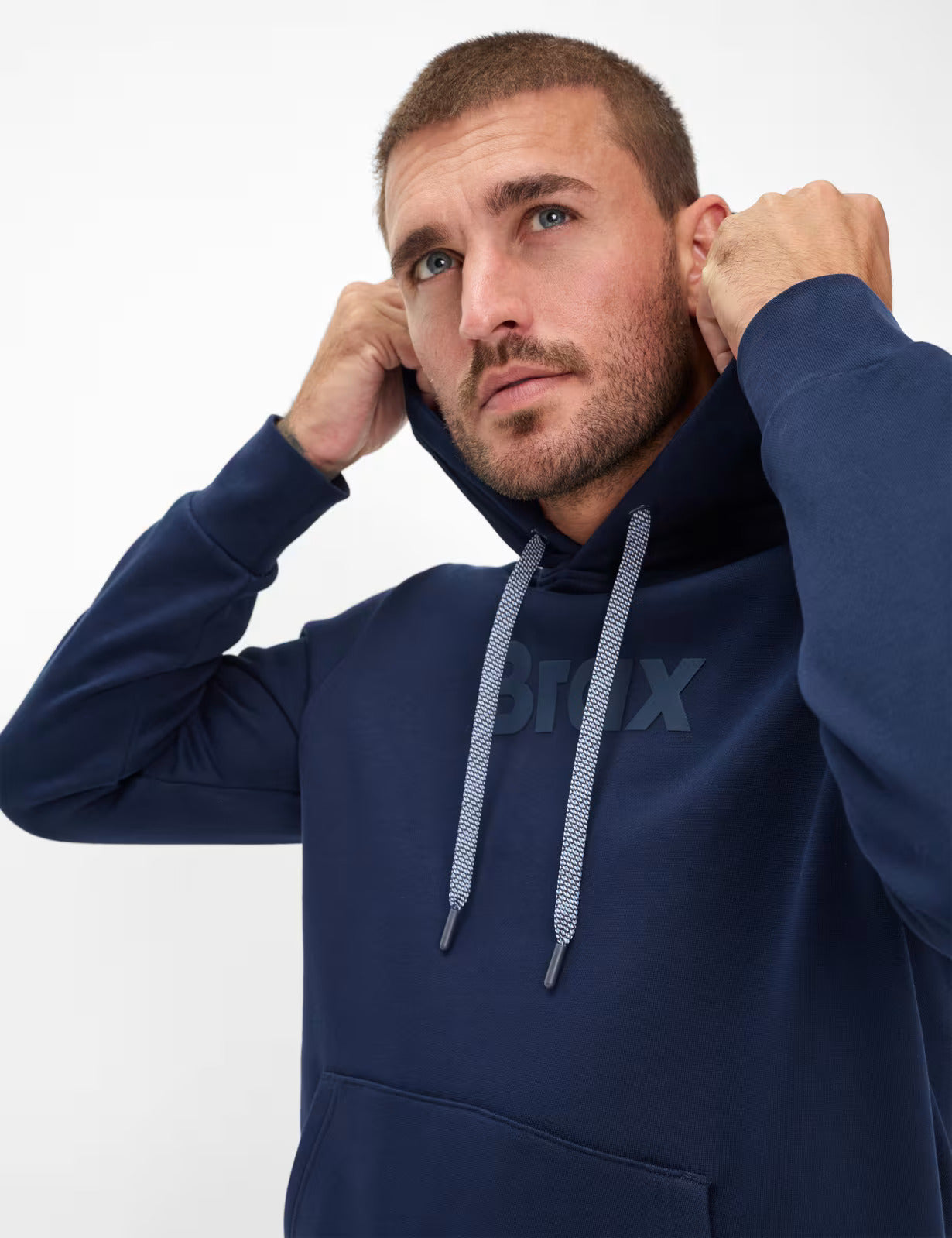 直筒剪裁,寬羅紋袖口,下擺和袖口,經典剪裁與現代感兼具。撞色抽繩的風帽為連帽衫增添了醒目的外觀,而袋鼠口袋不僅實用,更彰顯了其運動風範。正面飾有同色系的 Brax 字樣,低調地彰顯品牌概念,與整體造型和諧統一。