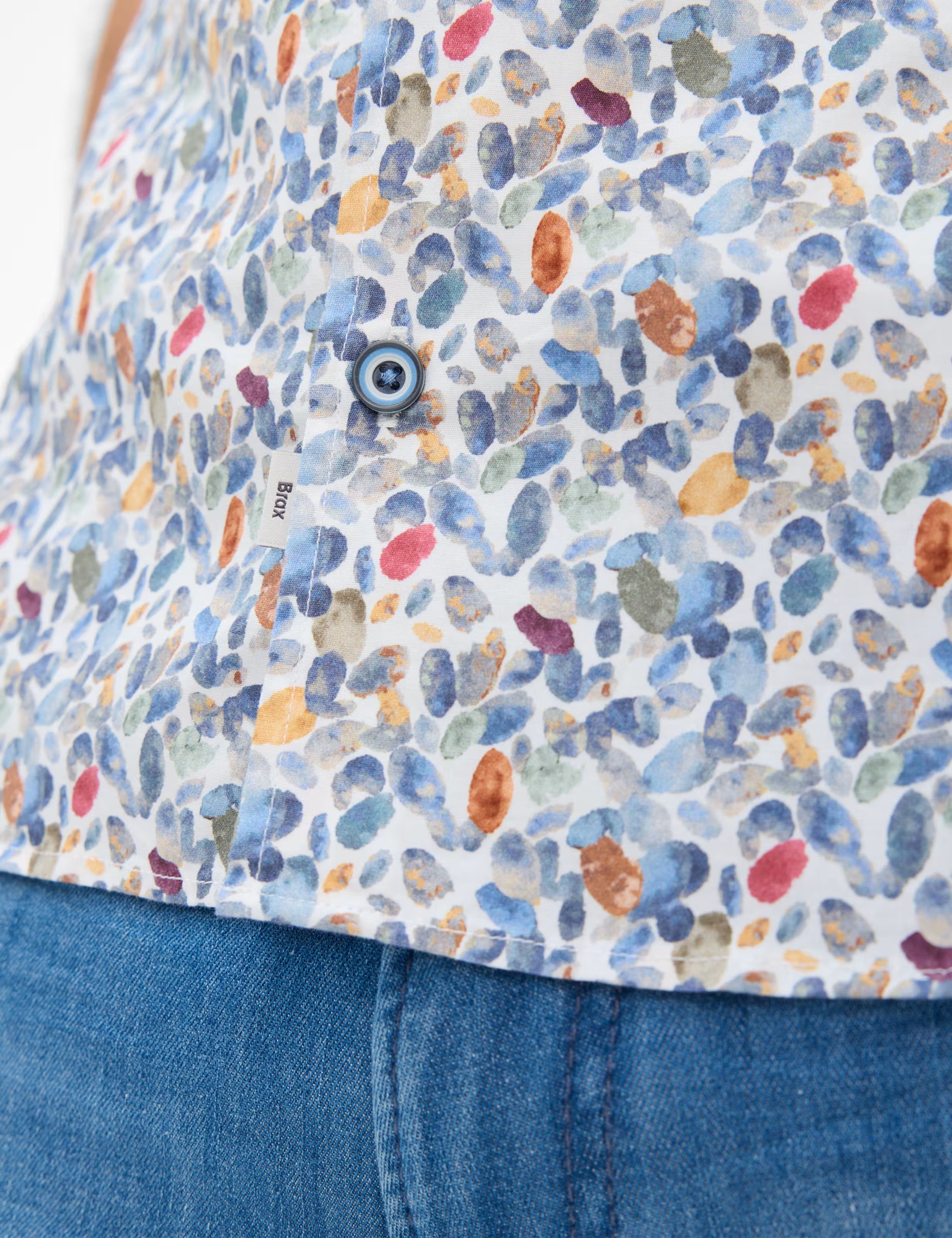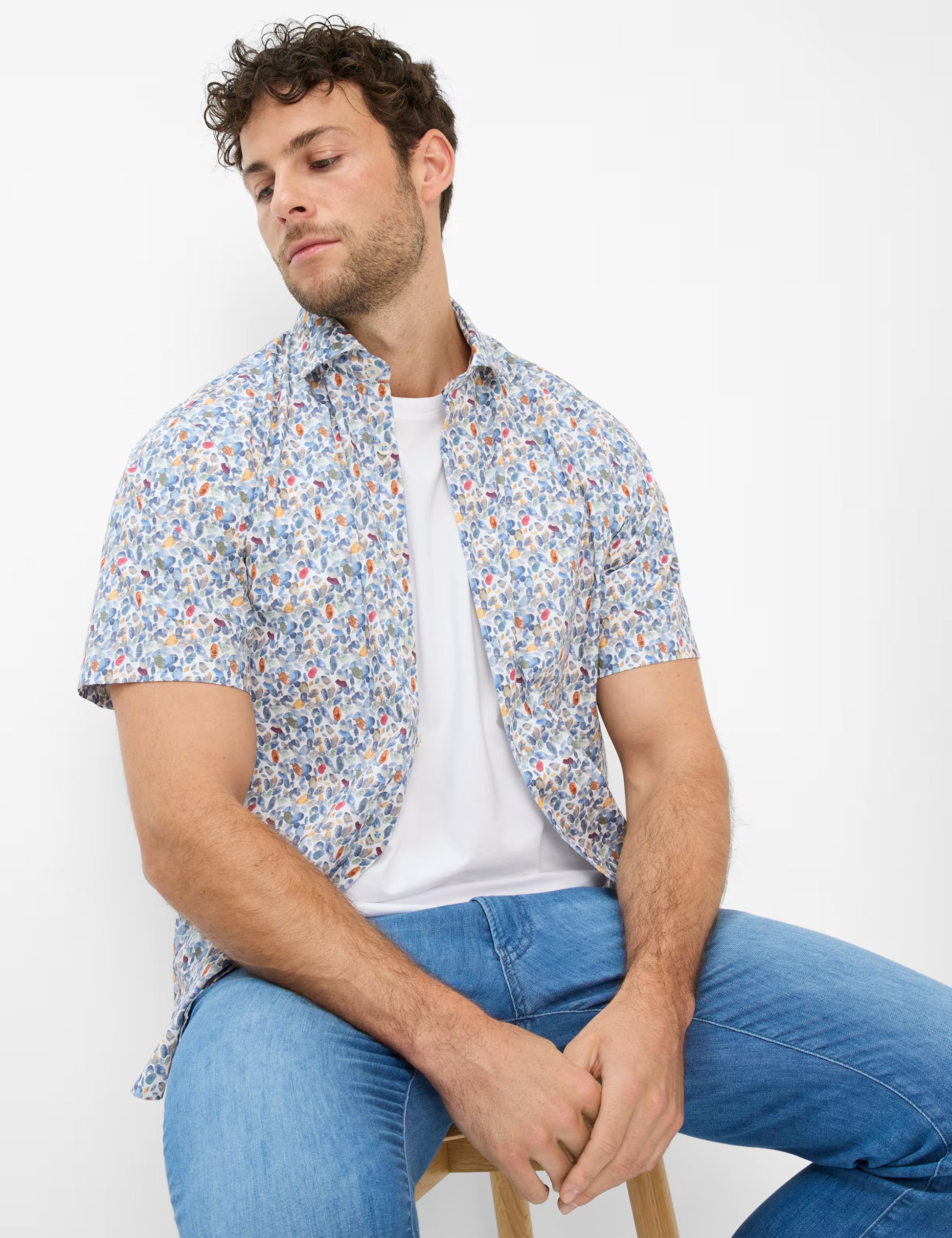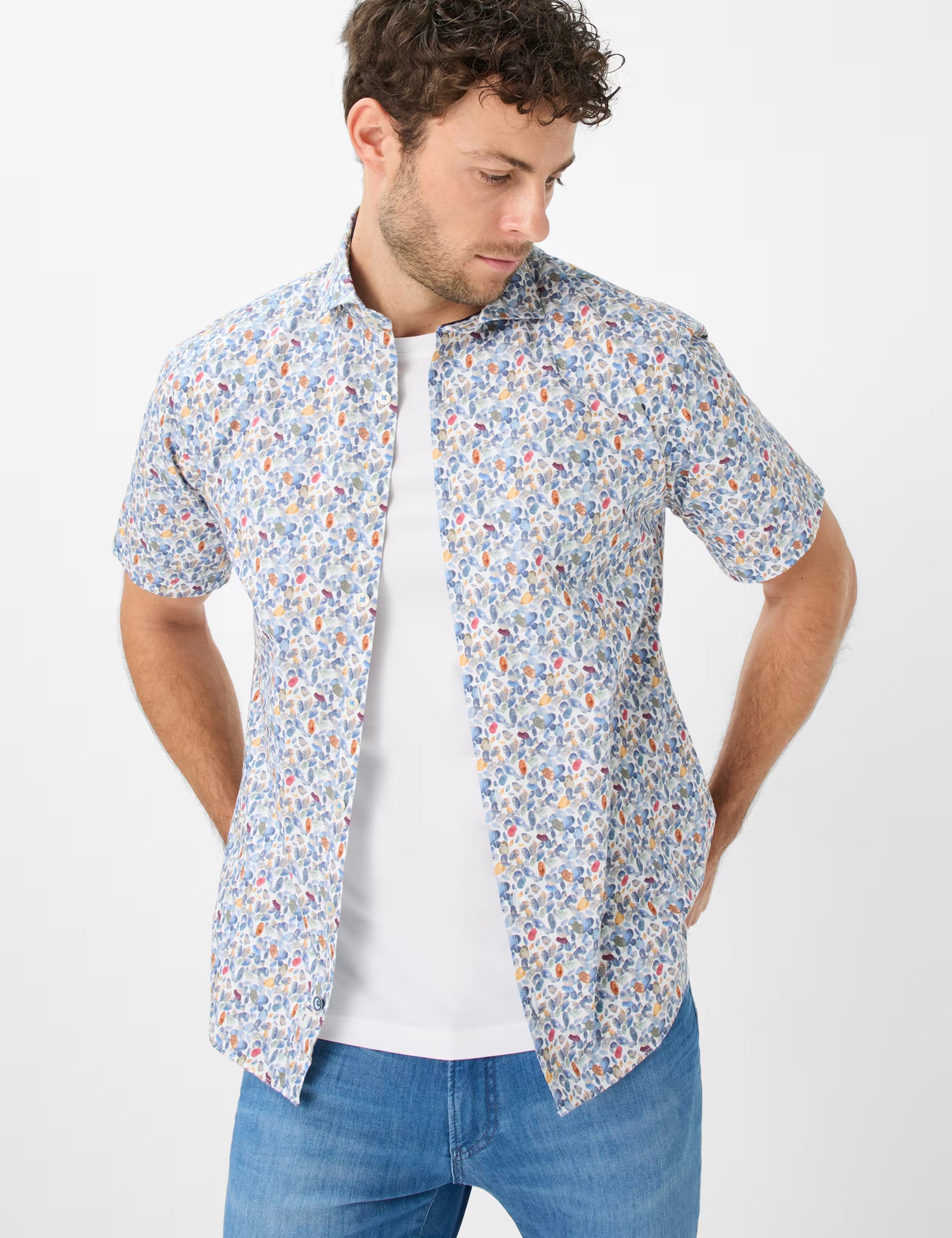 剪裁合身的設計凸顯了陽剛的氣質,而鯊魚領和半長袖則營造出時尚、現代的氣息。精緻簡約的印花確保了精緻的外觀,使襯衫成為百搭的伴侶。