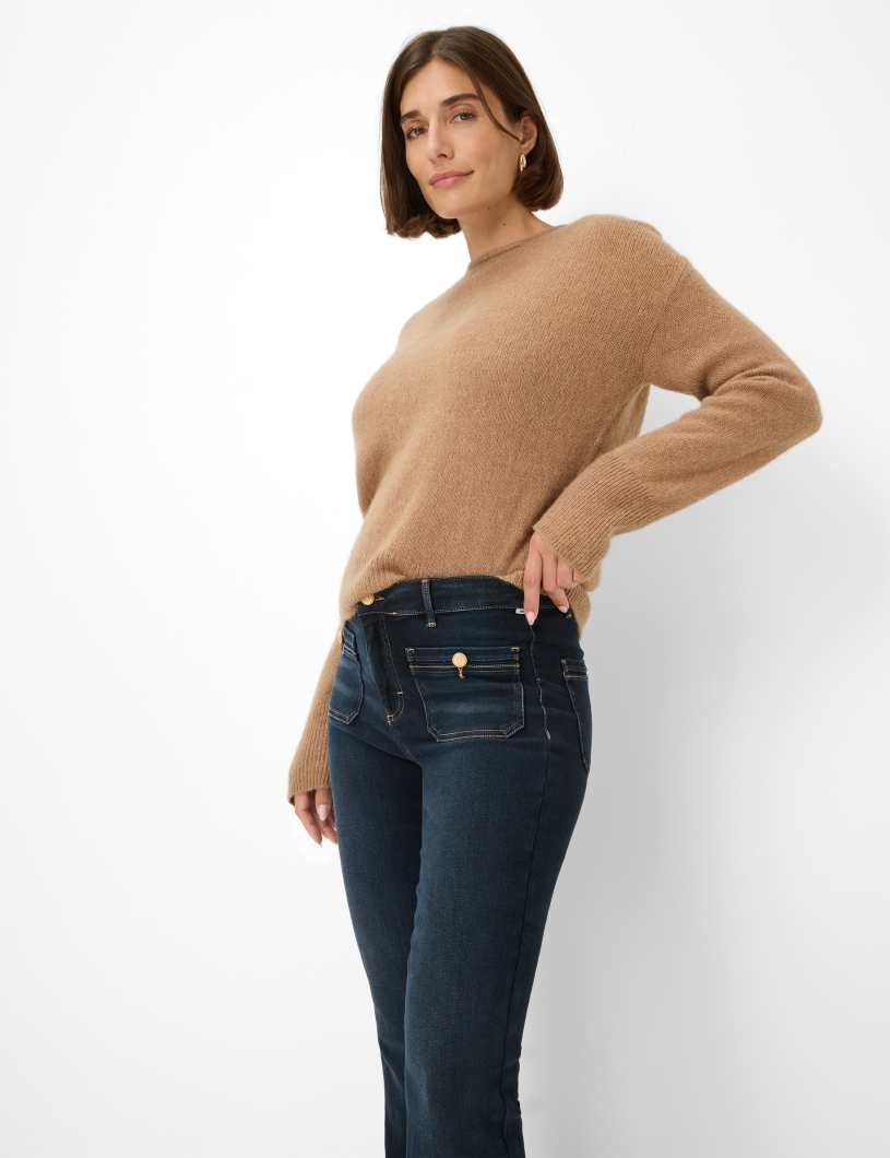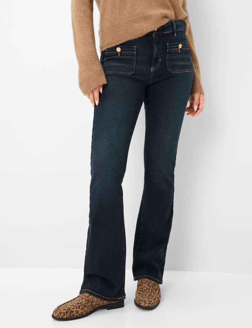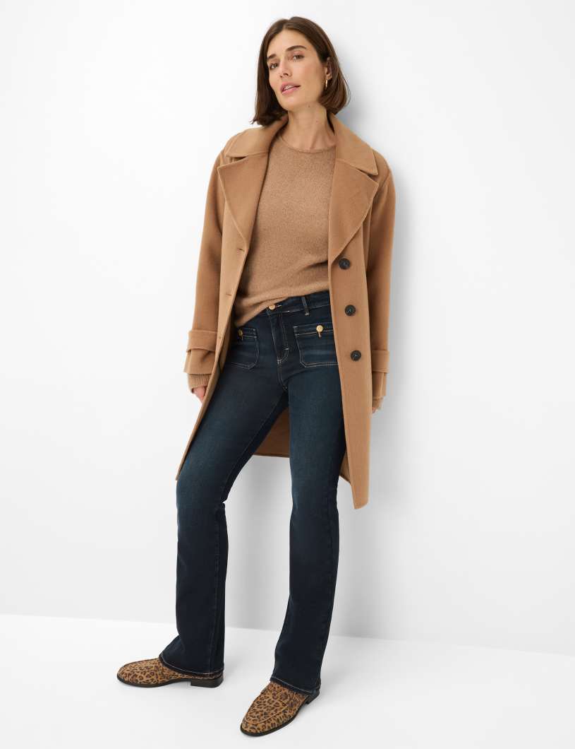 正面閃亮的金色紐扣奪目奪目,與牛仔布形成優雅對比,賦予這款女用牛仔褲高品質的時尚感。喇叭褲型修身顯腿長,特殊的提臀效果則提升並塑造了輪廓。貼袋和精緻的做舊效果,更凸顯了這款修身牛仔褲的時尚氣質。
