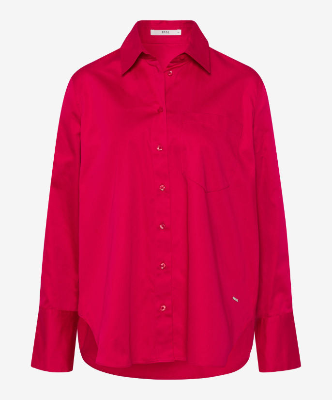 此款襯衫採用略微喇叭形的廓形和圓形下擺,彰顯精緻氣質。
