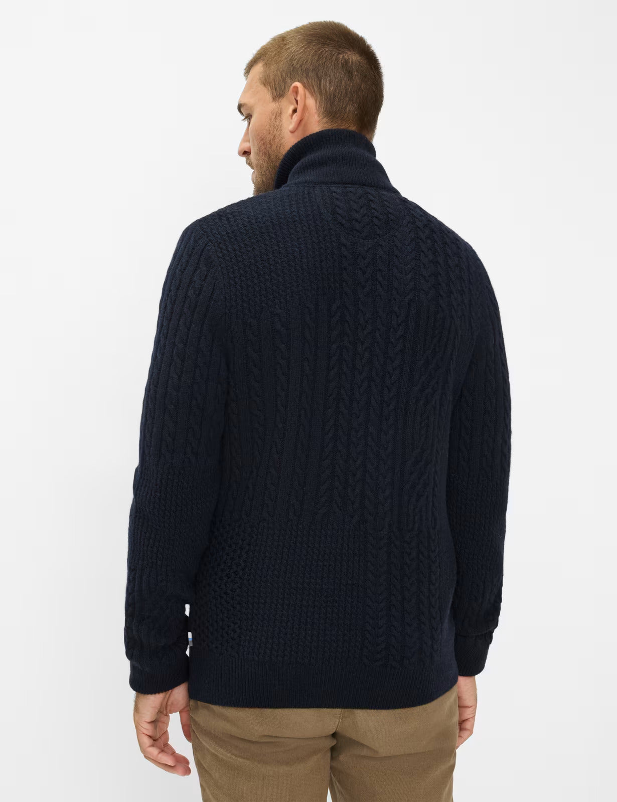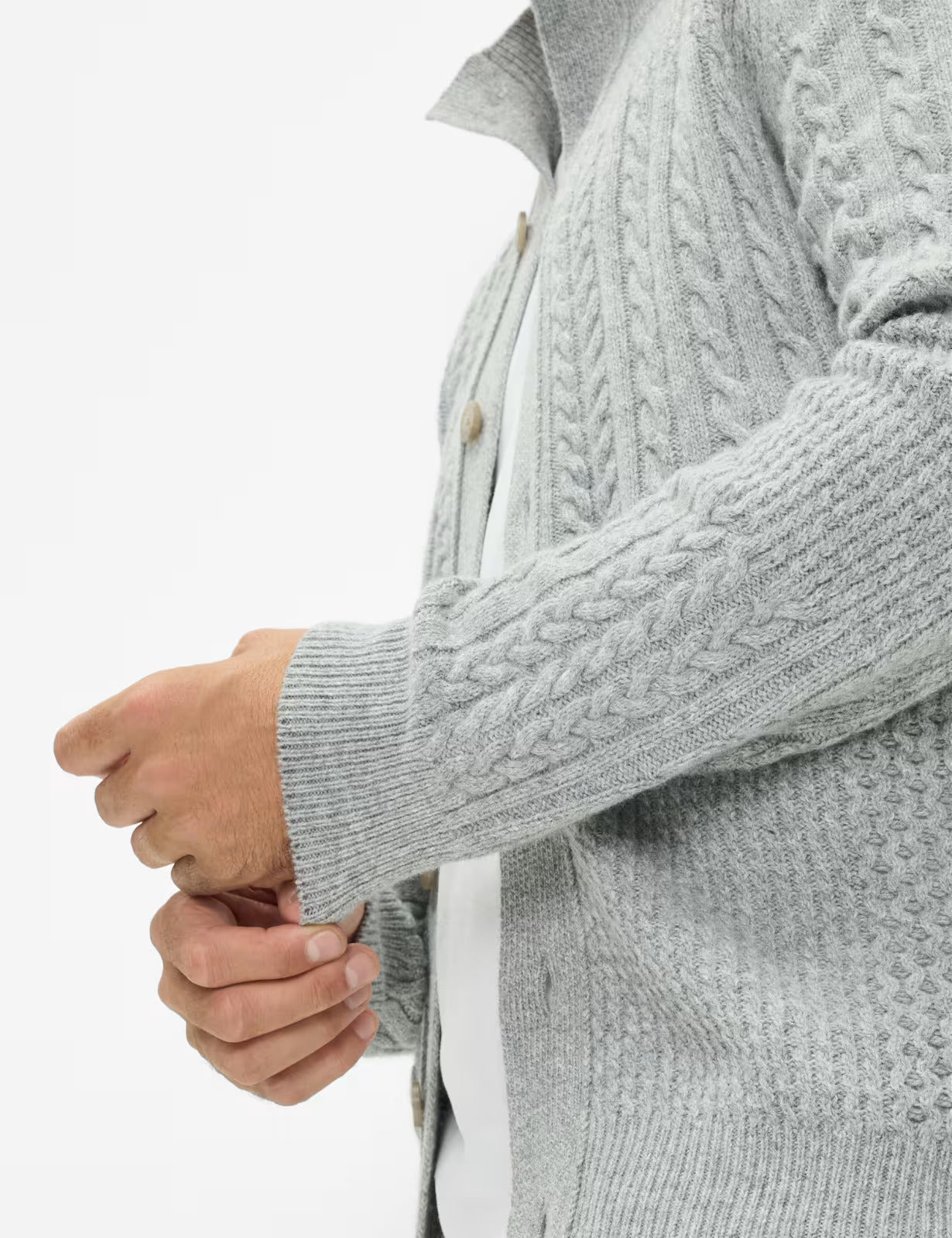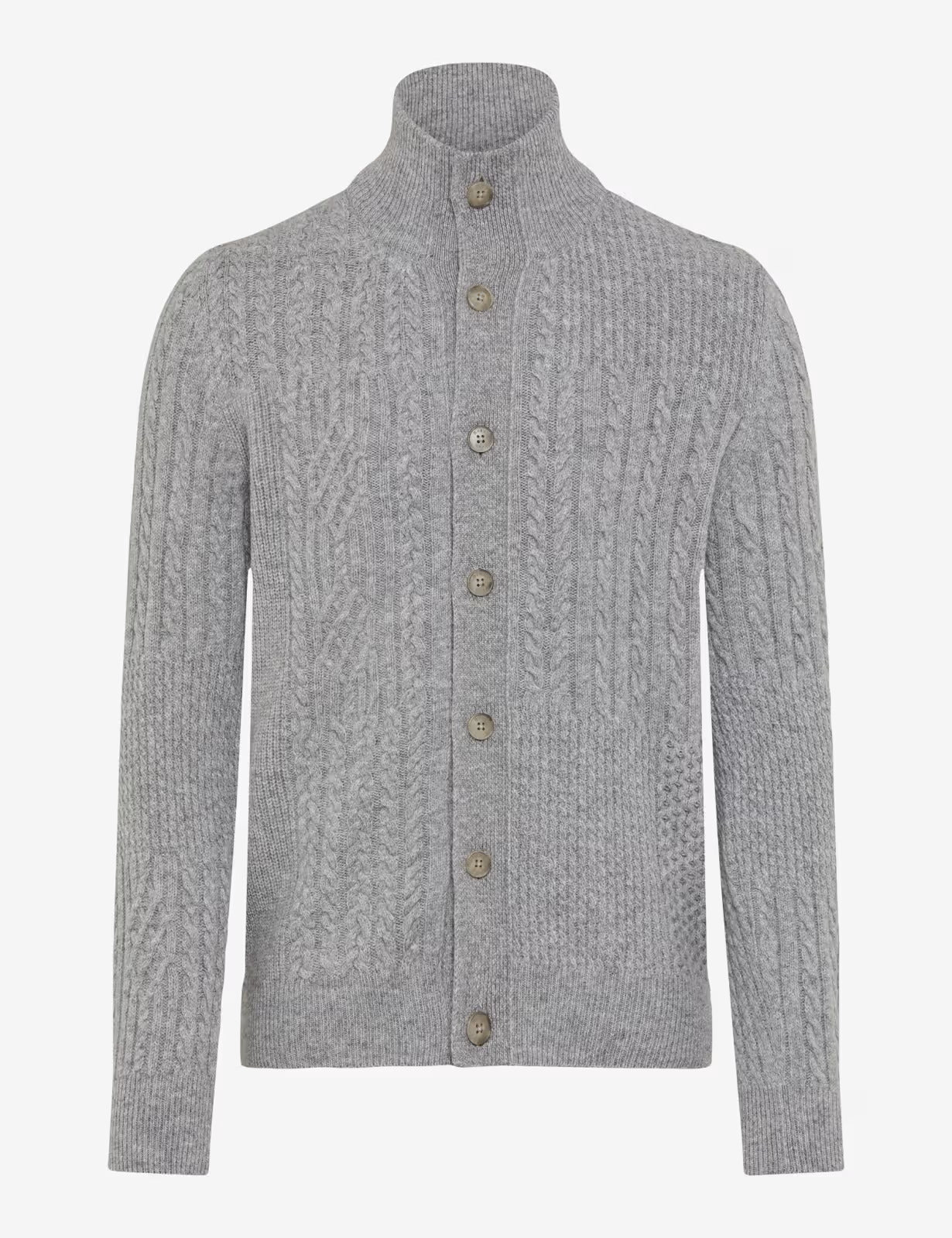 它採用直筒剪裁和實用的立領,提供經典的輪廓,並透過現代的絞花針織圖案獲得優雅而醒目的觸感。