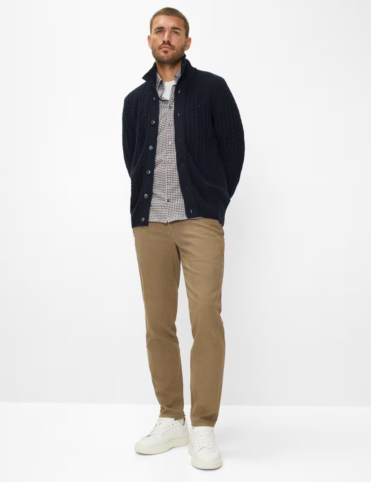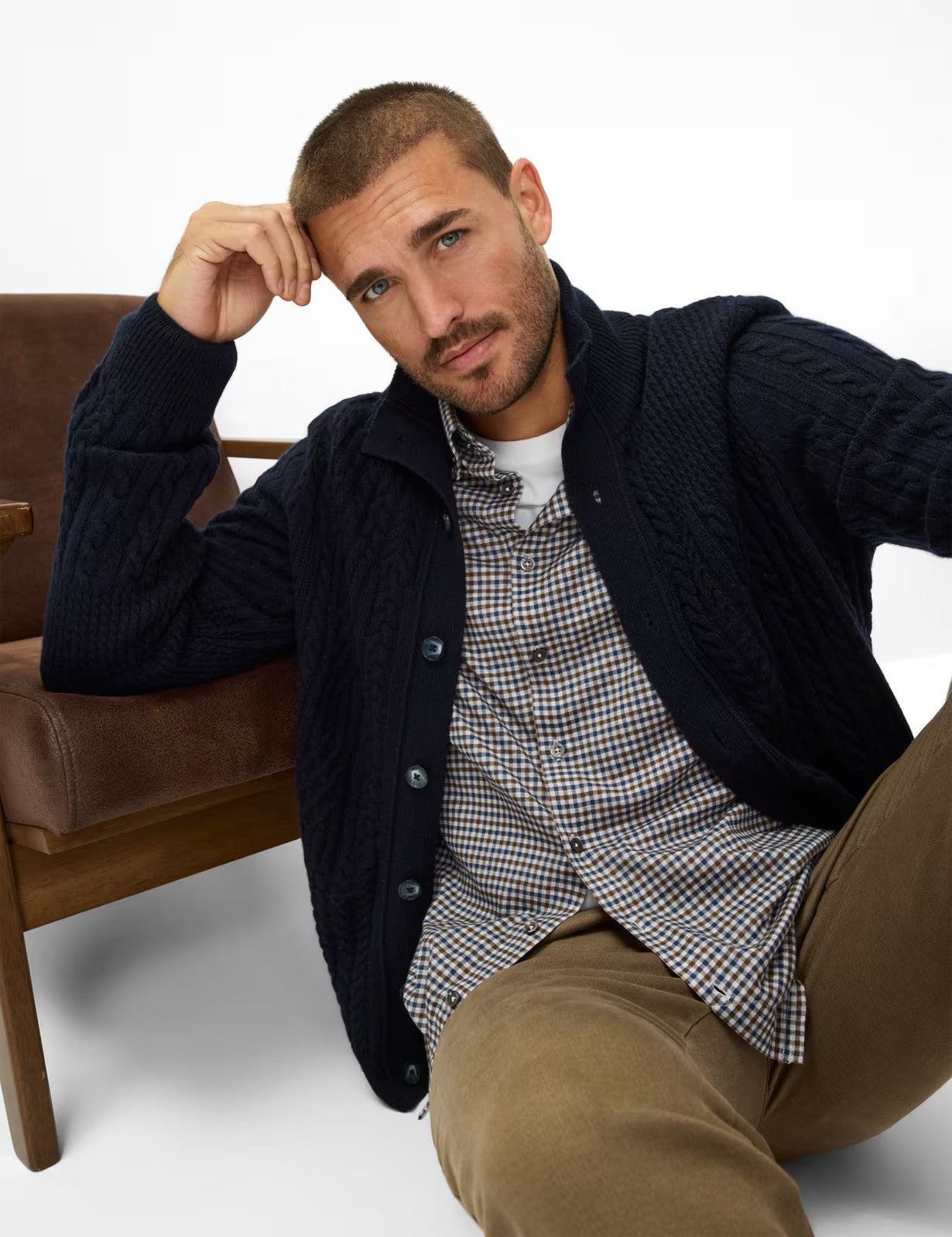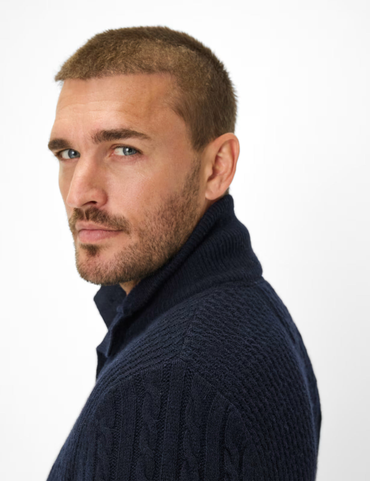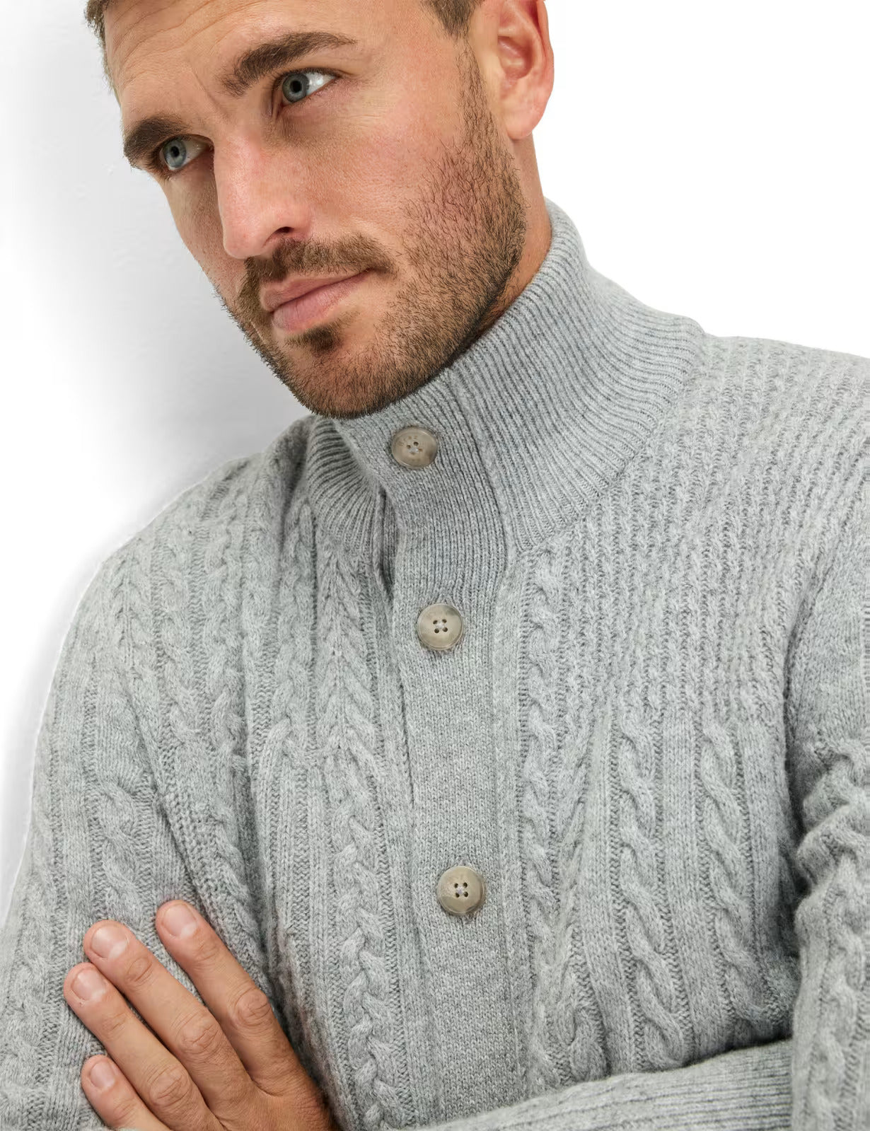它採用直筒剪裁和實用的立領,提供經典的輪廓,並透過現代的絞花針織圖案獲得優雅而醒目的觸感。