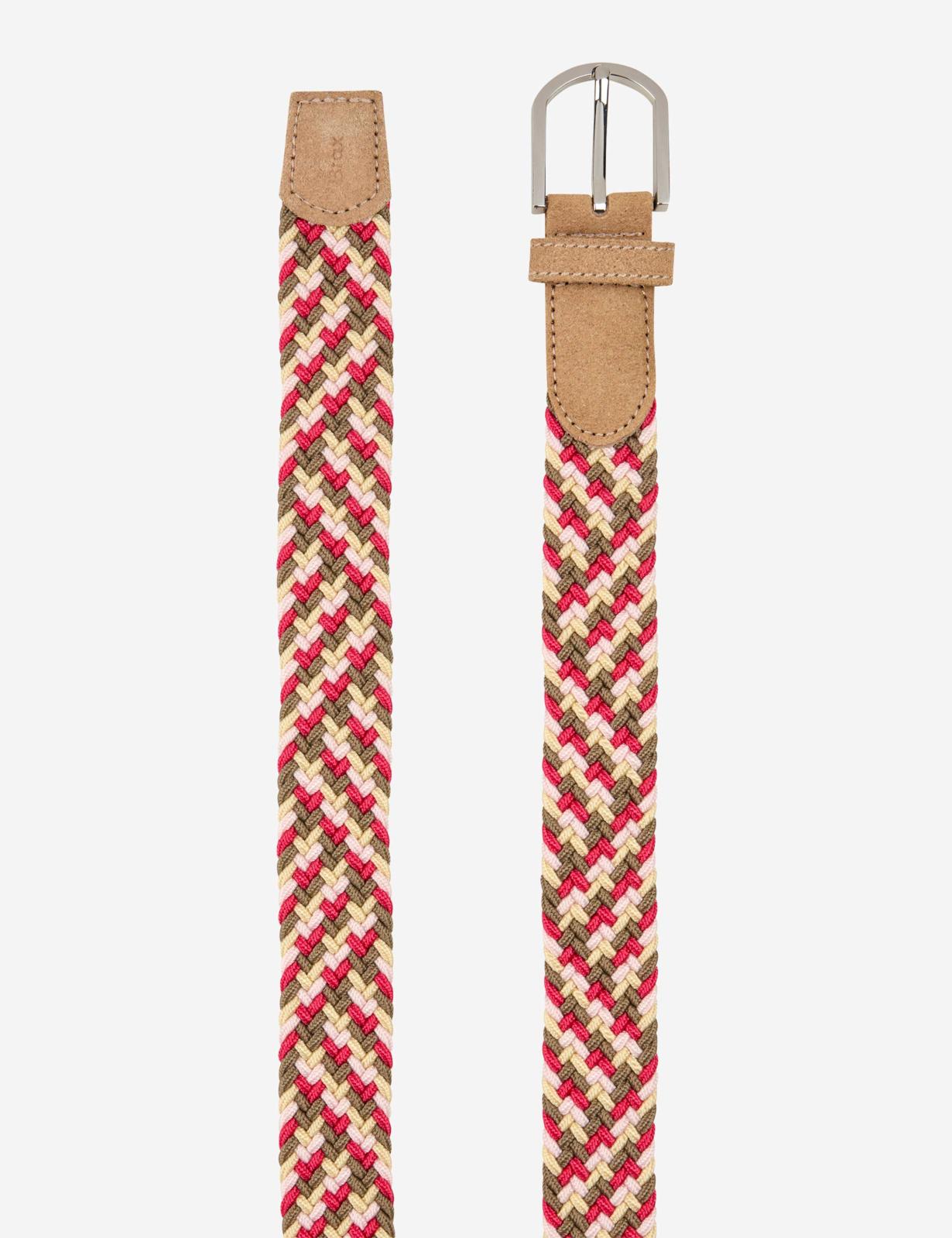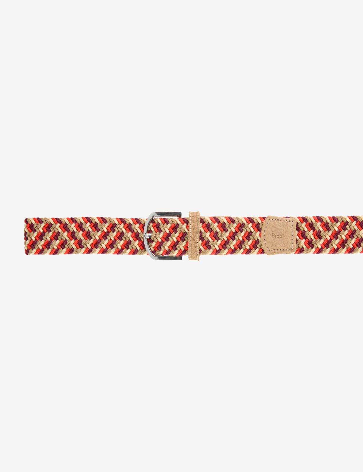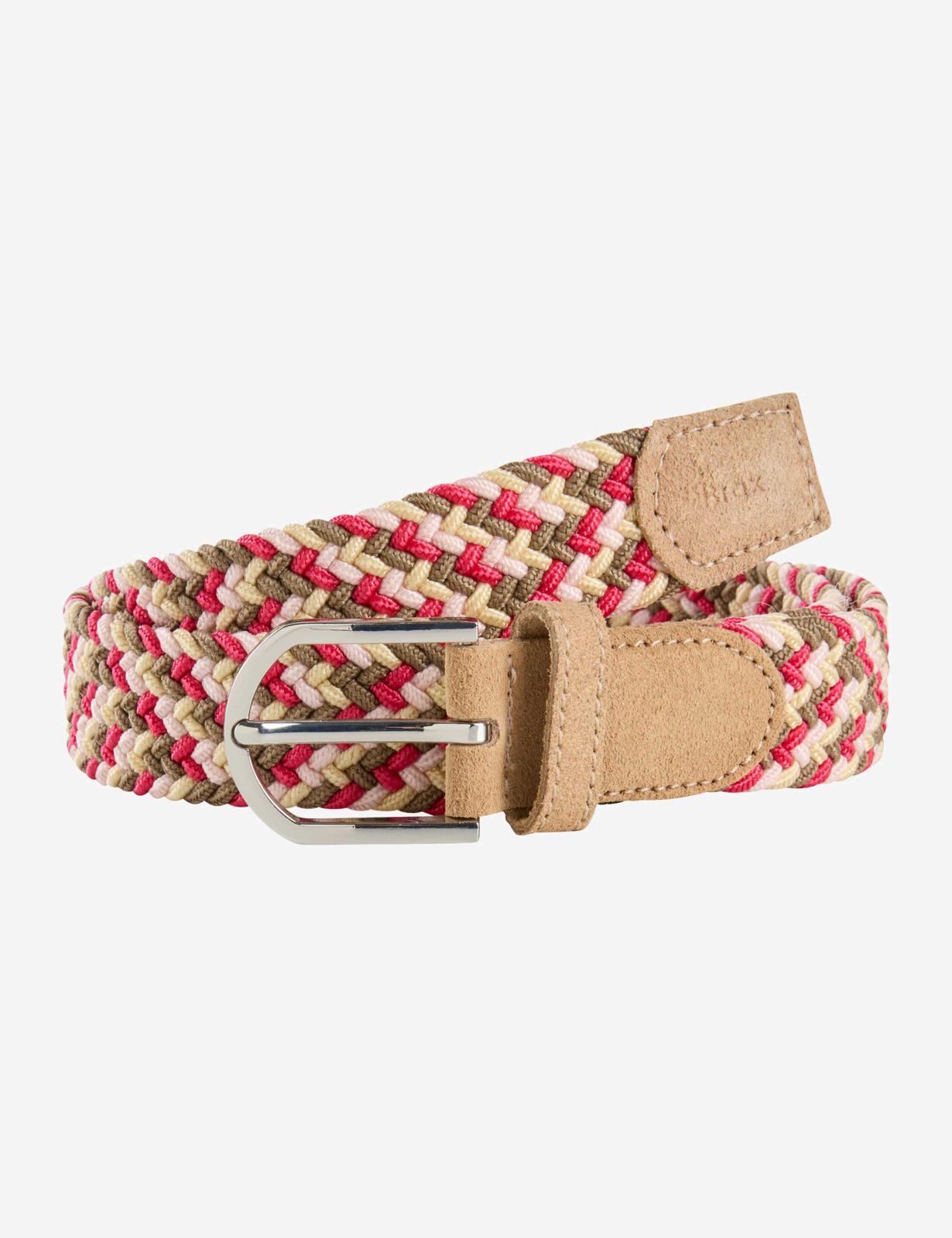 這款女士腰帶以其高品質的編織外觀和和諧的色彩令人印象深刻,為各種造型增添運動氣息。高貴的牛皮為經典的編織設計增添了微妙的點綴,而金屬扣環和固定腰帶環不僅外觀精美,而且實用性十足。