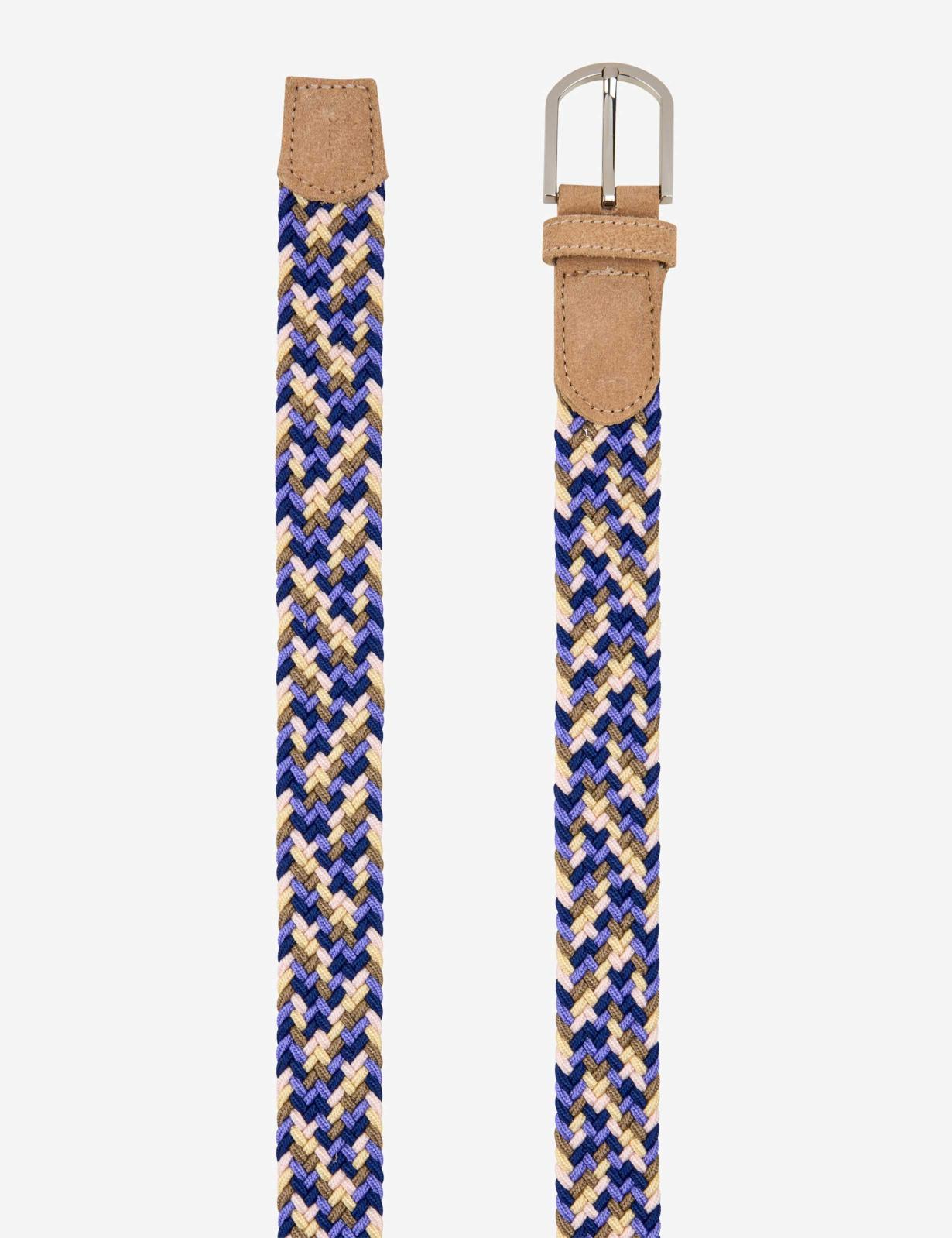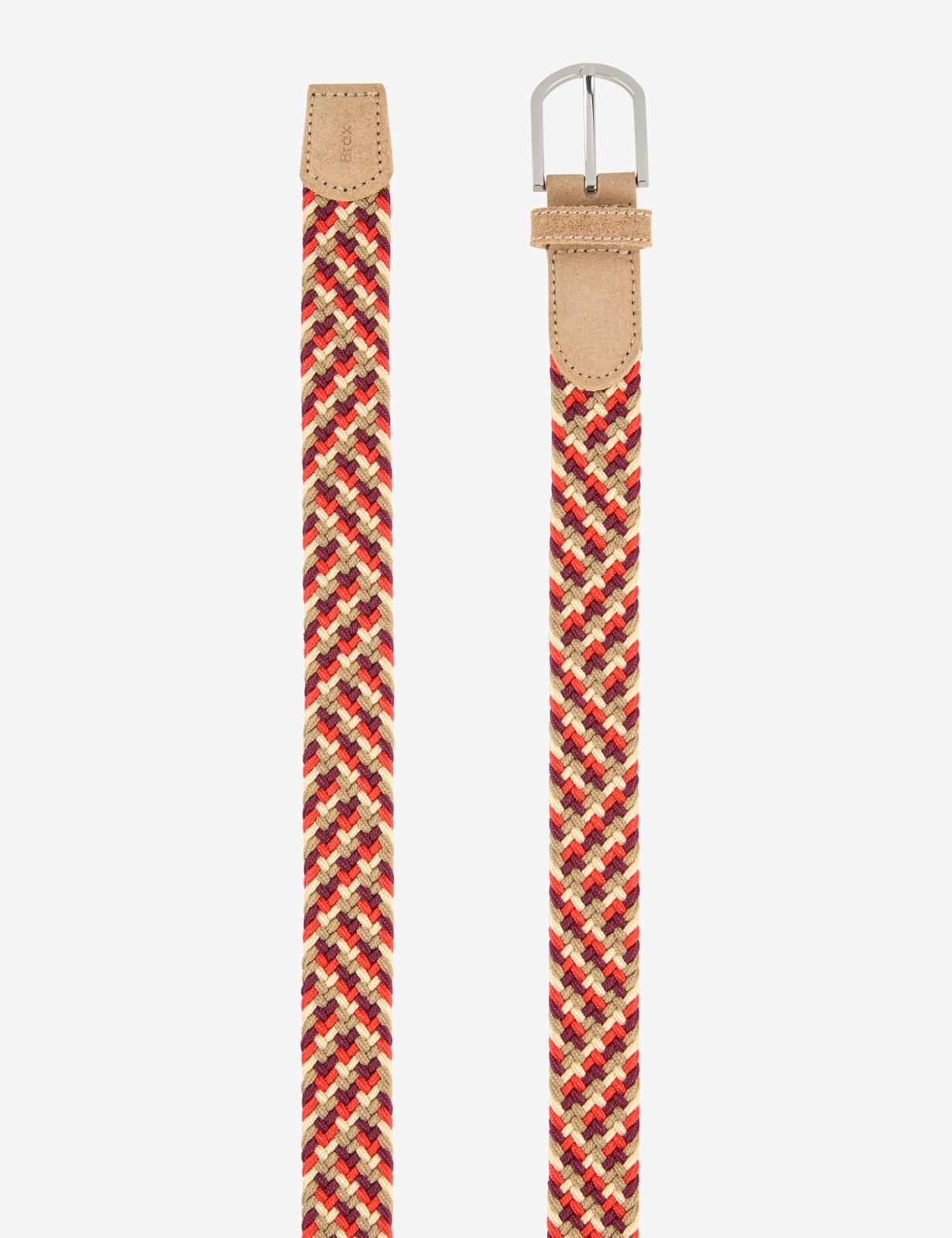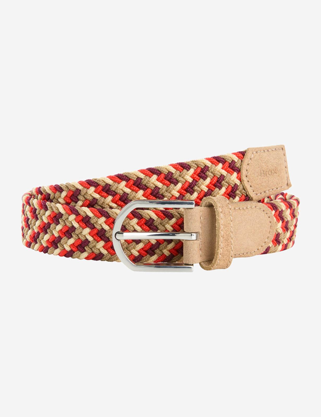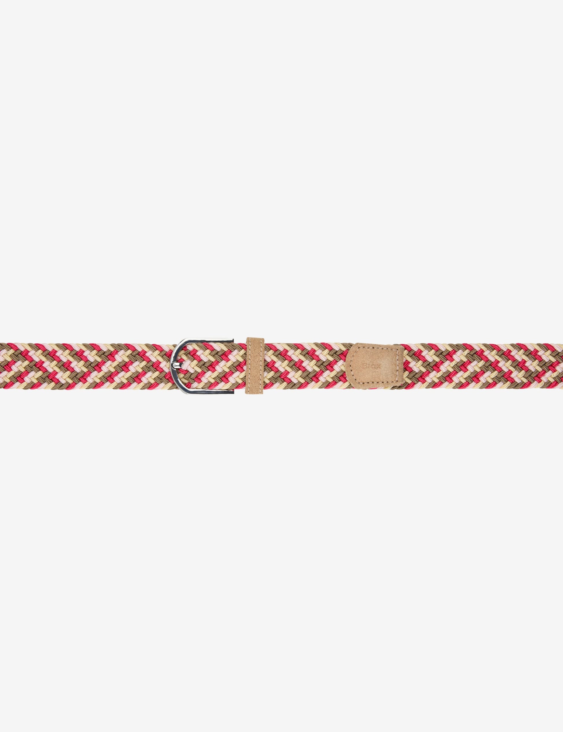 這款女士腰帶以其高品質的編織外觀和和諧的色彩令人印象深刻,為各種造型增添運動氣息。高貴的牛皮為經典的編織設計增添了微妙的點綴,而金屬扣環和固定腰帶環不僅外觀精美,而且實用性十足。