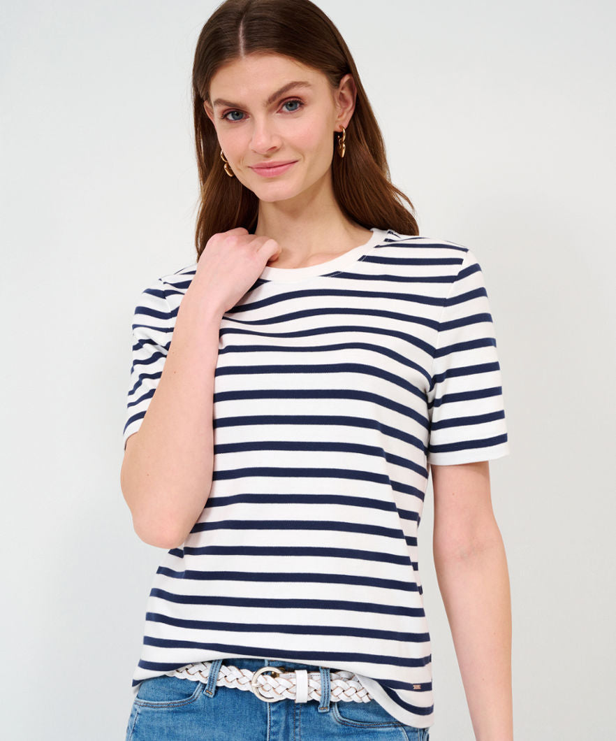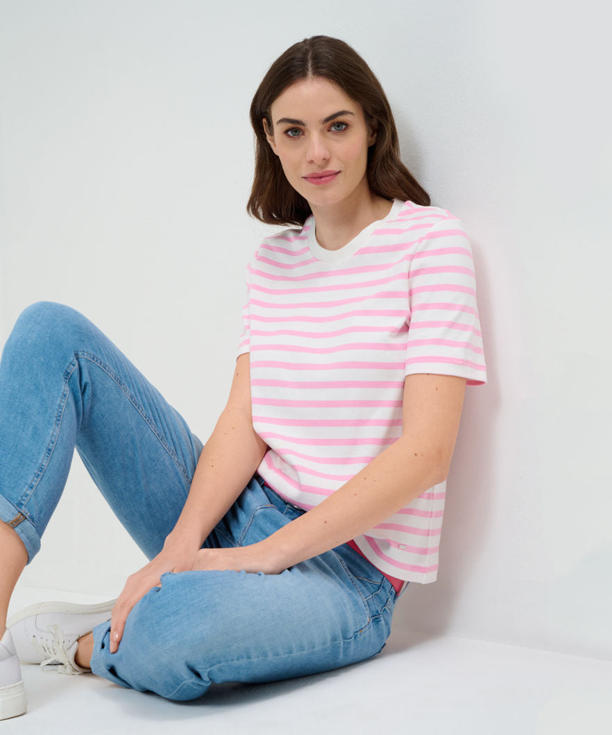 這件T恤以其運動條紋的外觀立即吸引眼球,為每一套衣服增添了活力。這款T恤採用質地柔軟的純棉針織面料,穿著舒適,經久耐用。