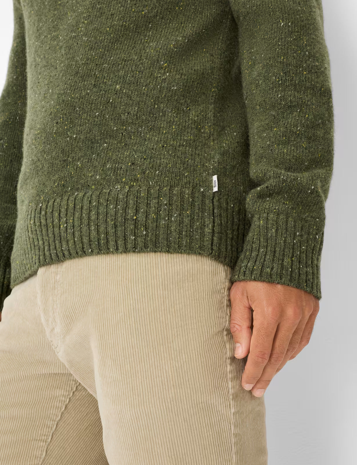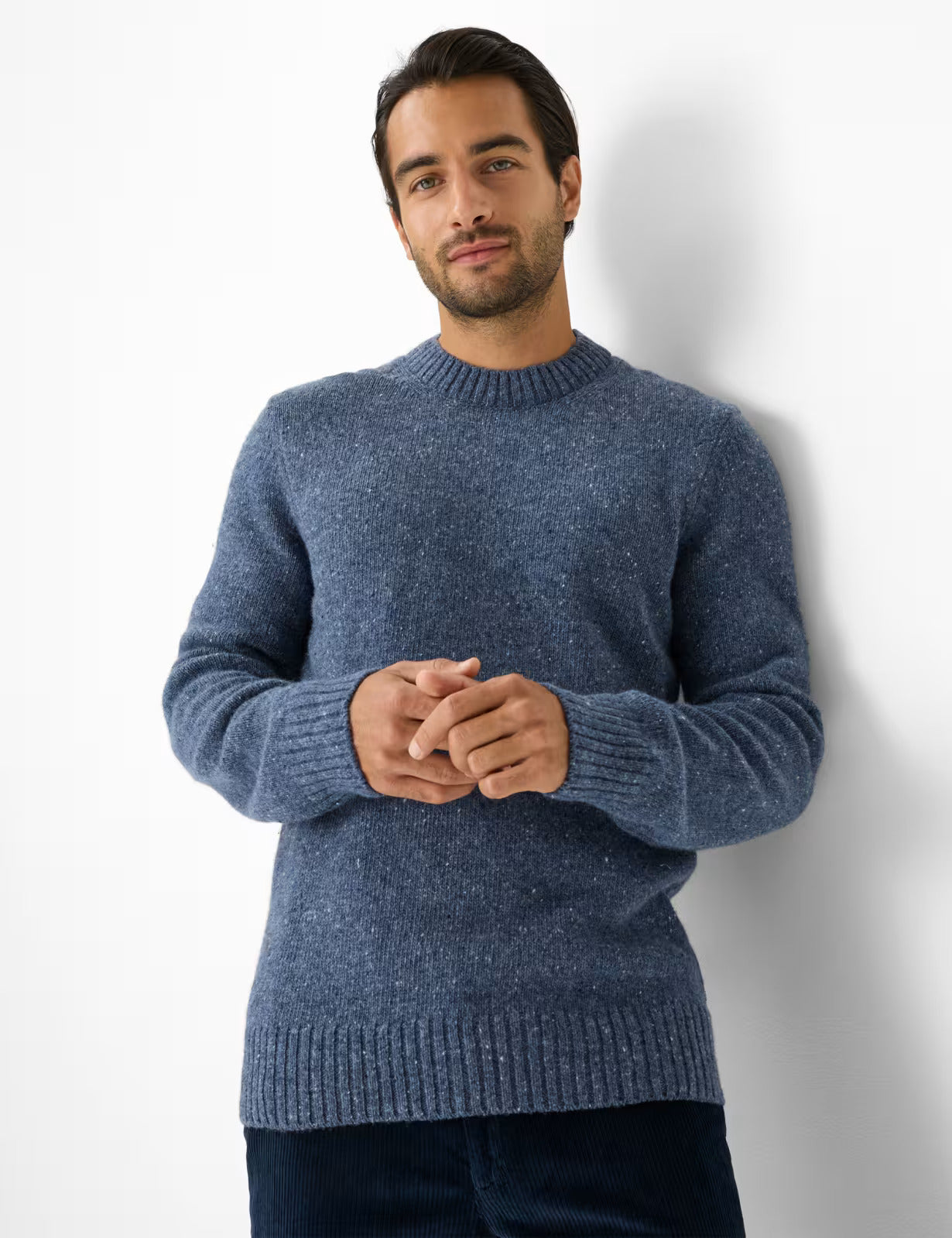 高品質的混色粗呢外觀,凸顯了這款毛衣的時尚個性,並增添了令人驚豔的質感。由於羊毛和聚醯胺的優質組合,這款毛衣不僅保暖舒適,還兼具持久不變形的耐用性和舒適的穿著體驗。