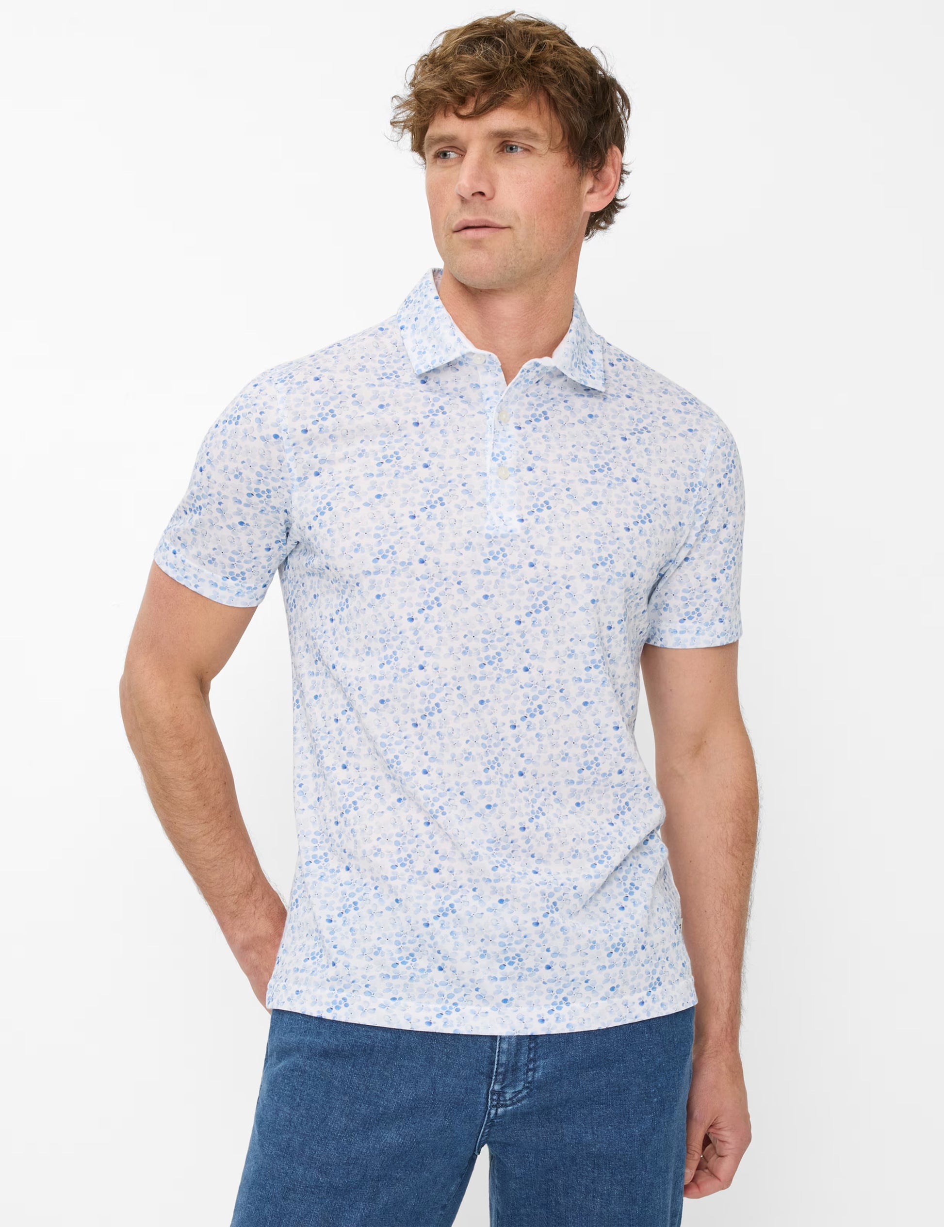 直筒剪裁搭配經典馬球領,打造現代、尊貴外觀。流行的全身印花營造出夏日氣息。