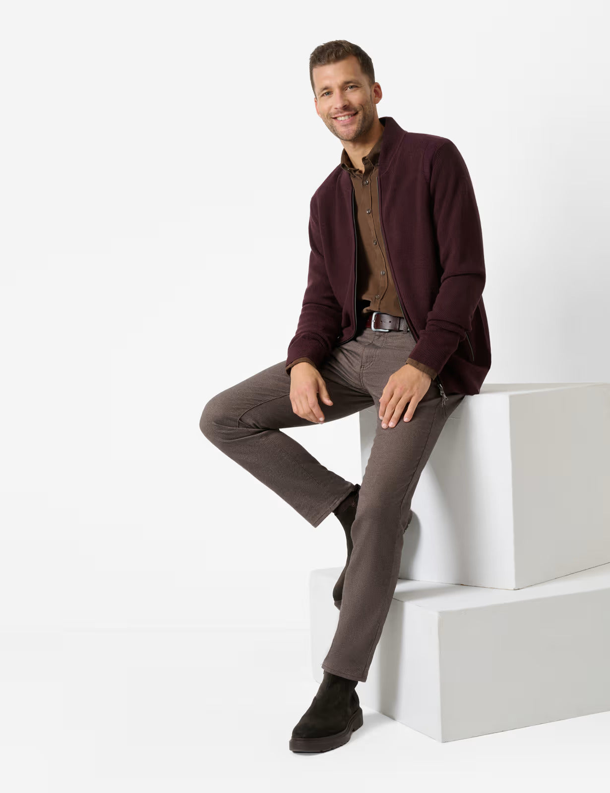 將時尚運動鞋或靴子與這款五袋褲子時尚搭配。直筒男褲採用經典剪裁、直筒剪裁和規則腰部設計。精緻的口袋設計賦予褲子經典的感覺。此外,它們還配有裝飾性鉚釘和仿皮飾邊。